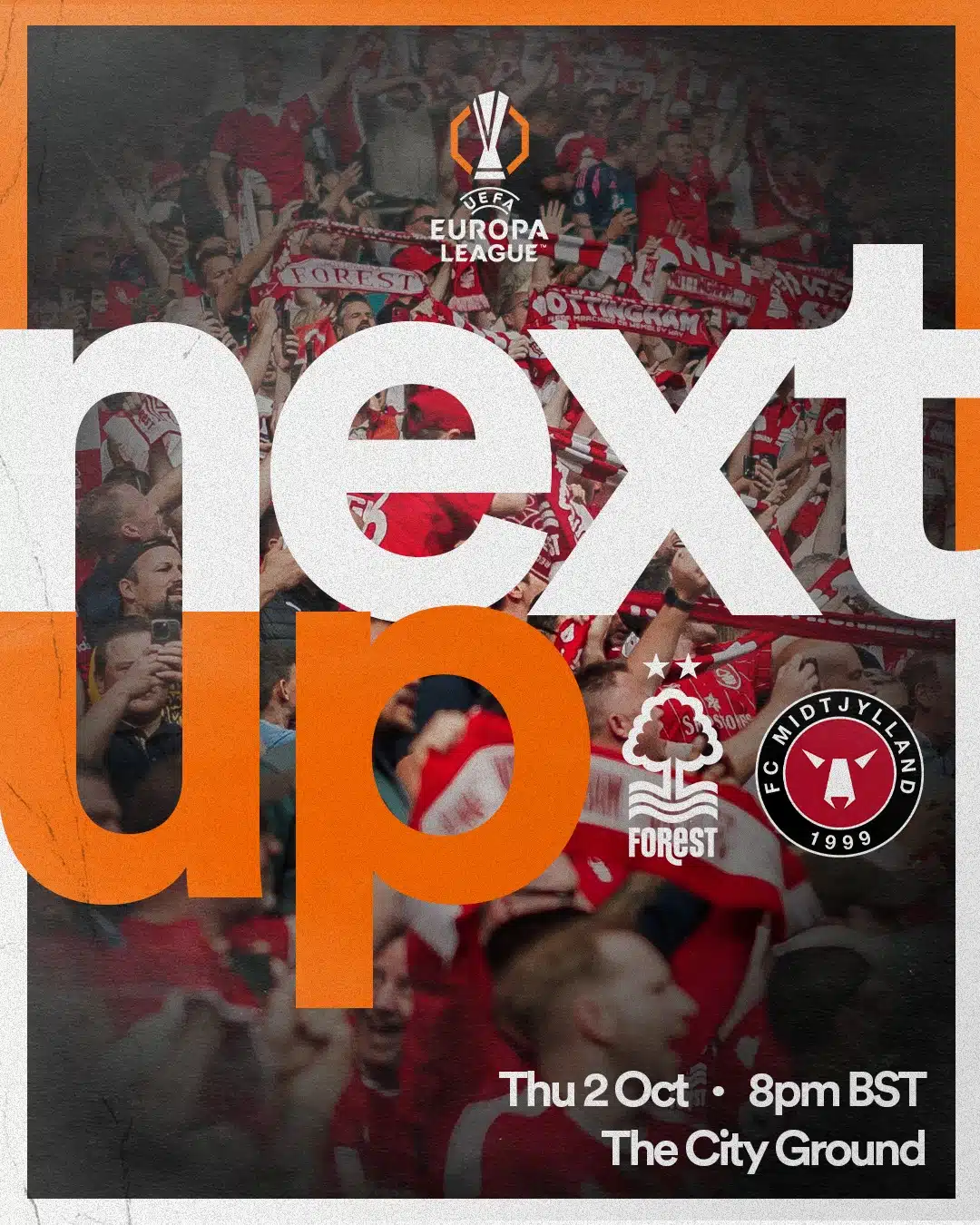 2 ตุลาคม 68 ดูบอลสด ฟุตบอล ยูโรป้า ลีก 2025/26 รอบลีกเฟส นัดที่ 2 ระหว่าง น็อตติ้งแฮม ฟอเรสต์ พบ มิดทิลลันด์ ที่สนาม ซิตี้ กราวน์ เวลา 02:00 น. ตามเวลาประเทศไทย พร้อมถ่ายทอดสด