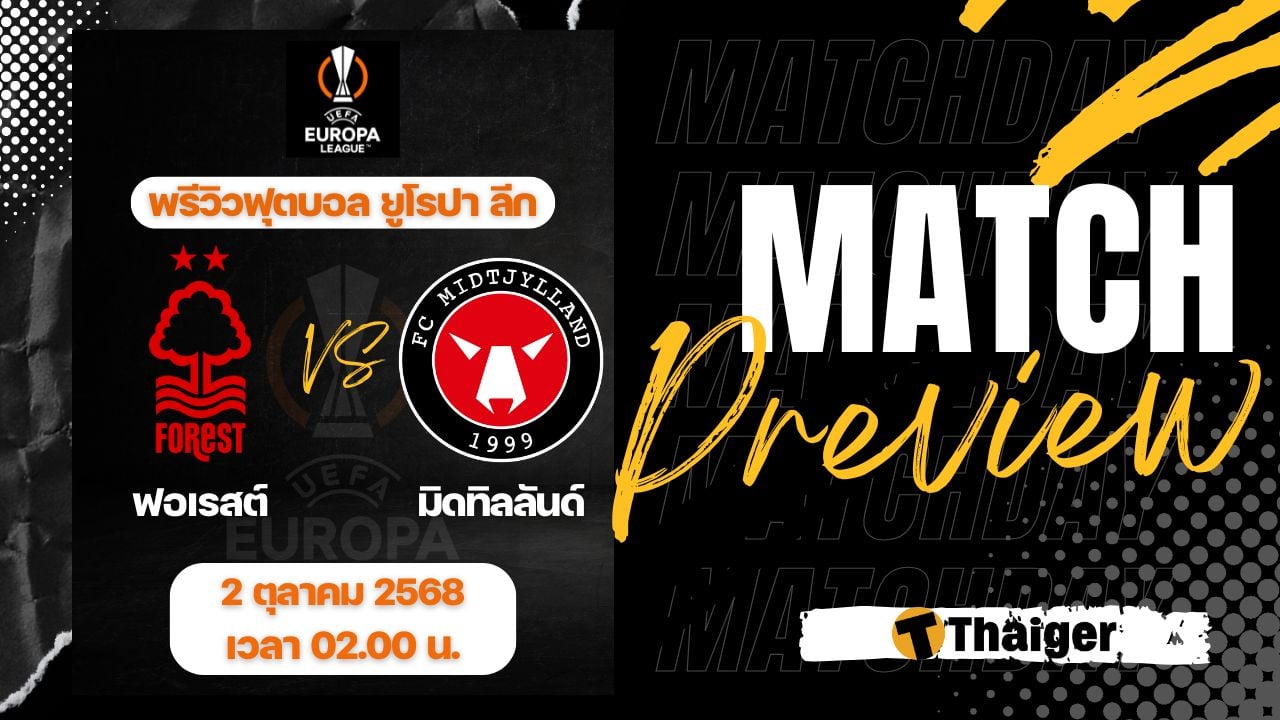 2 ตุลาคม 68 ดูบอลสด ฟุตบอล ยูโรป้า ลีก 2025/26 รอบลีกเฟส นัดที่ 2 ระหว่าง น็อตติ้งแฮม ฟอเรสต์ พบ มิดทิลลันด์ ที่สนาม ซิตี้ กราวน์ เวลา 02:00 น. ตามเวลาประเทศไทย พร้อมถ่ายทอดสด