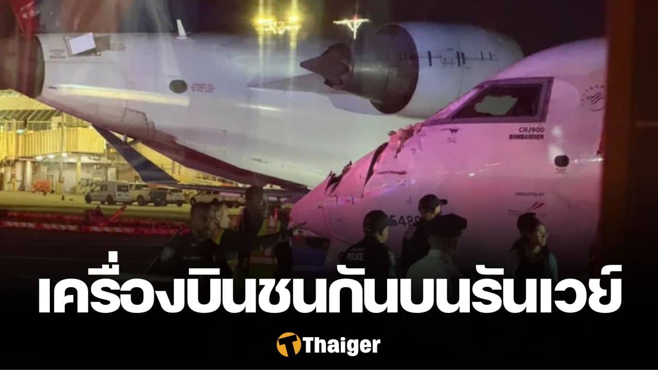 ระทึก เครื่องบินเดลตาแอร์ไลน์ 2 ลำชนกันบนรันเวย์ หัวพัง-ปีกหัก มีผู้บาดเจ็บ 1 ราย