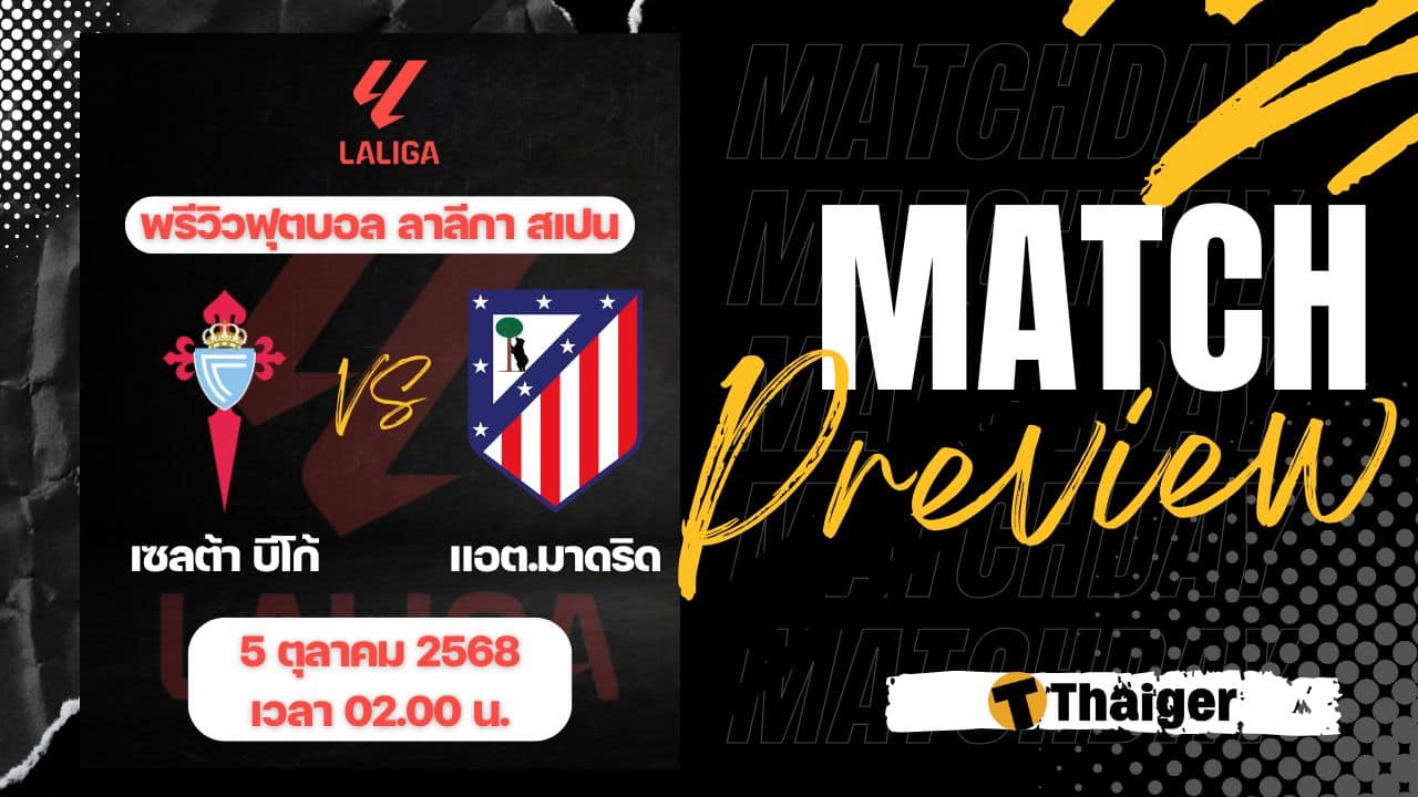 5 ตุลาคม 2568 เวลา 02.00 น. ถ่ายทอดสด ดูบอลสด ฟุตบอล ลาลีกา สเปน ฤดูกาล 2025/26 ที่สนาม เอสตาดิโอ เด บาไลดอส เซลต้า บีโก้ พบ แอต.มาดริด The Thaiger พาไปวิเคราะห์เกม พร้อมการทำนายผล และคาดการณ์ 11 ตัวจริงได้ที่นี่