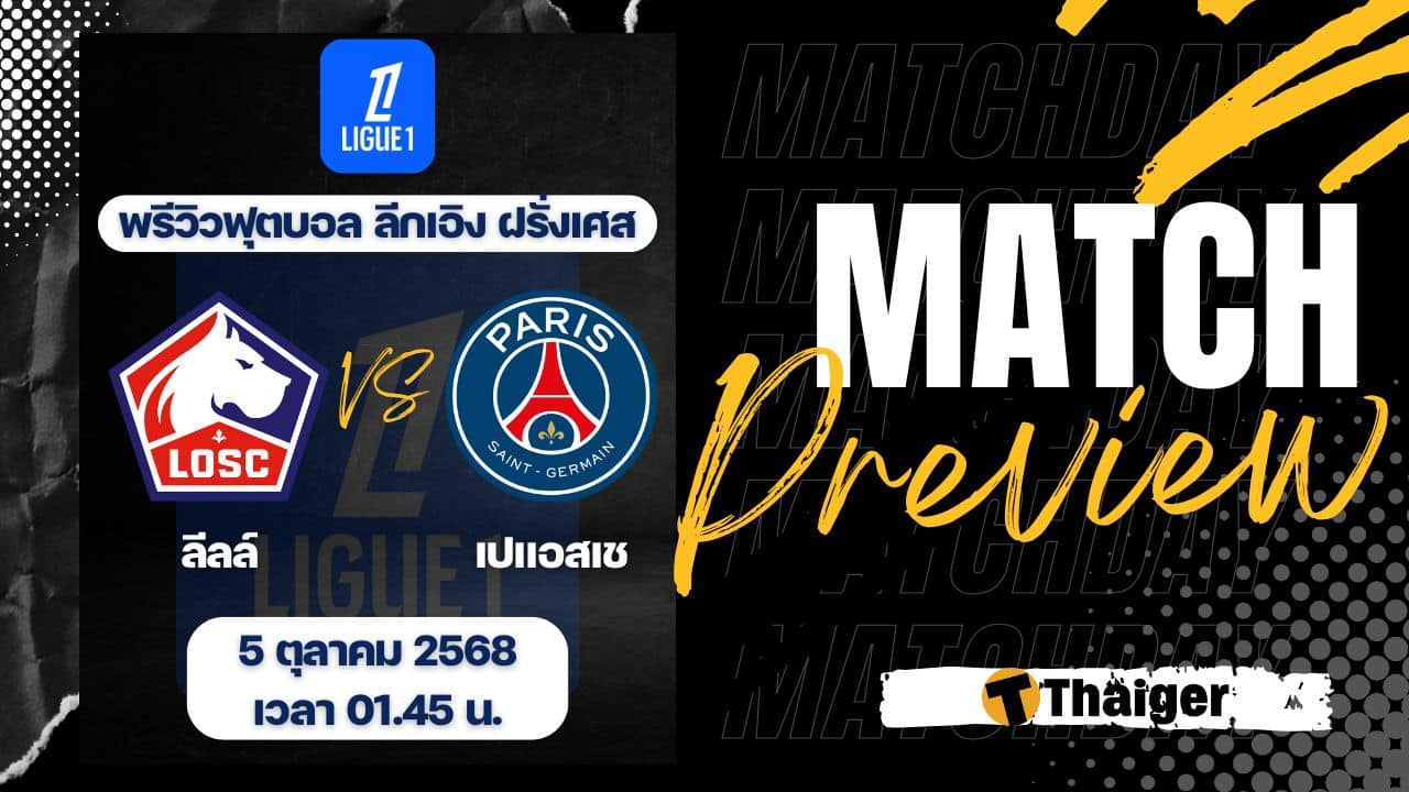 5 ตุลาคม 2568 เวลา 01.45 น. ถ่ายทอดสด ดูบอลสด ฟุตบอล ลีกเอิง ฝรั่งเศส ฤดูกาล 2025/26 ที่สนาม สต๊าด ปิแอร์-เมารอย ลีลล์ พบ เปแอสเช The Thaiger พาไปวิเคราะห์เกม พร้อมการทำนายผล และคาดการณ์ 11 ตัวจริงได้ที่นี่