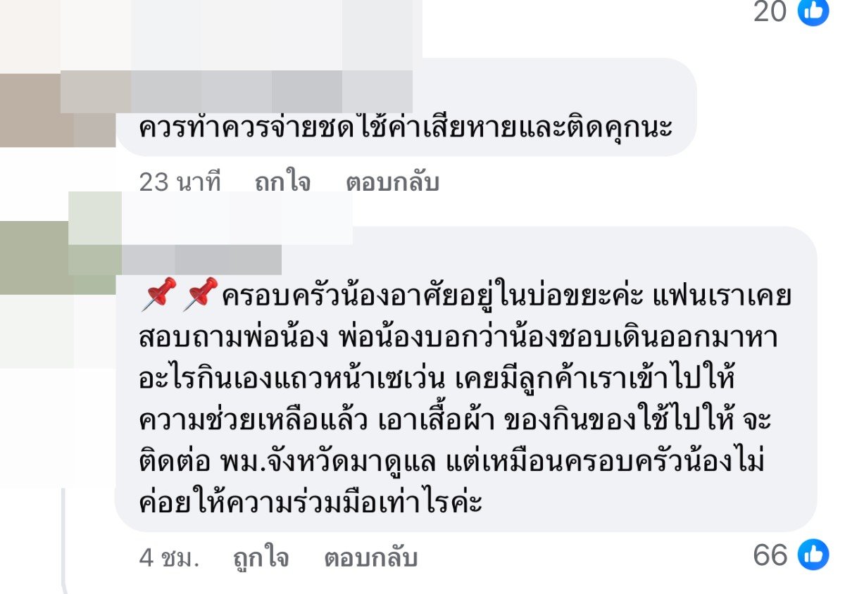 จากข้อมูลทั้งหมด ปัจจุบันยังคงต้องรอการคำชี้แจงจากพม.ในจังหวัดเกี่ยวกับการเข้าให้ความช่วยเหลือเด็กรายนี้ว่า คืบหน้าอย่างไร เนื่องจากข้อมูลของผู้ที่เคยช่วยเหลือน้องแจ้งว่า “ครอบครัวน้องอาศัยอยู่ในบ่อขยะ แฟนเคยสอบถามพ่อเด็กบอกว่า น้องชอบเดินออกมาหาอะไรกินเองแถวหน้าร้านสะดวกซื้อ และเคยมีลูกค้าที่รู้จักเข้าไปให้ความช่วยเหลือแล้ว เอาเสื้อผ้าของกินของใช้ไปให้ จะติดต่อ พม.จังหวัดมาดูแล แต่เหมือนครอบครัวน้องไม่ค่อยให้ความร่วมมือเท่าไรด้วย.