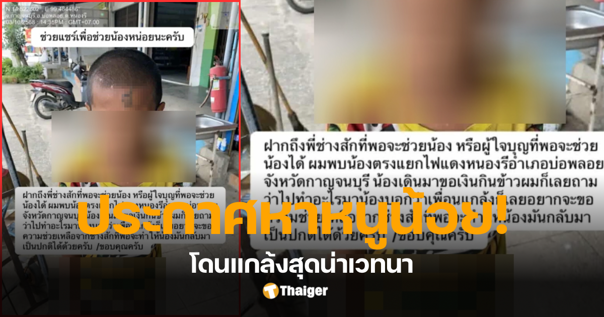 “เมื่อคืนผมขึ้นไลฟ์แล้วมีคนเข้ามาขอให้ผมไปช่วยเหลือน้องคนนี้ที ใครที่อยู่แถวหนองรี บ่อพลอย กาญจนบุรี เจอเด็กคนนี้ทักหาผมทีนะครับ“