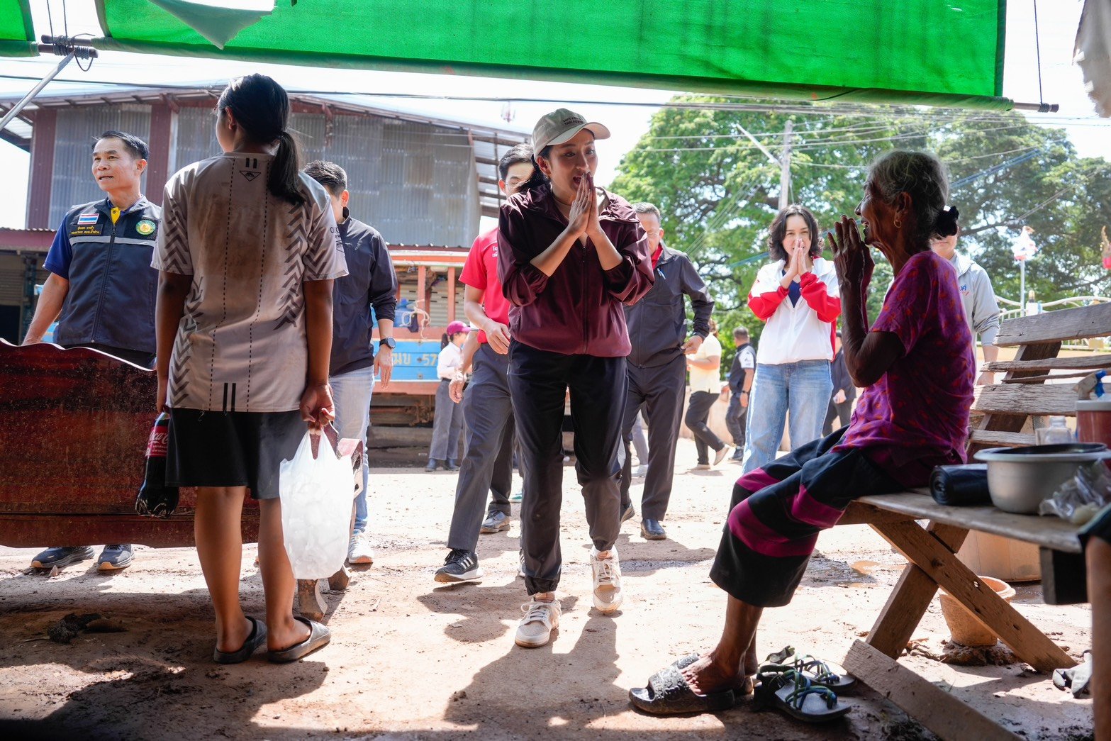นางสาวแพทองธารได้กล่าวกับพี่น้องประชาชนว่า “วันนี้ดิฉันมาพร้อม สส. เพื่อไทย ดิฉันอยากมาให้กำลังใจพี่น้องทุกท่านด้วยตัวเอง ก่อนหน้านี้ที่ทราบข่าวว่าน้ำท่วมรู้สึกเป็นห่วง เมื่อได้มีโอกาสคุยกับพี่น้องในพื้นที่ ก็ทราบว่าเป็นปัญหาที่หนักมาก ขอส่งกำลังใจให้ทุกท่านนะคะ สส.พรรคเพื่อไทยพร้อมช่วยเหลือทุกท่าน ทั้งความช่วยเหลือผ่านถุงยังชีพ และผ่านการผลักดันในสภาเพื่อเร่งรัดค่าเยียวยา