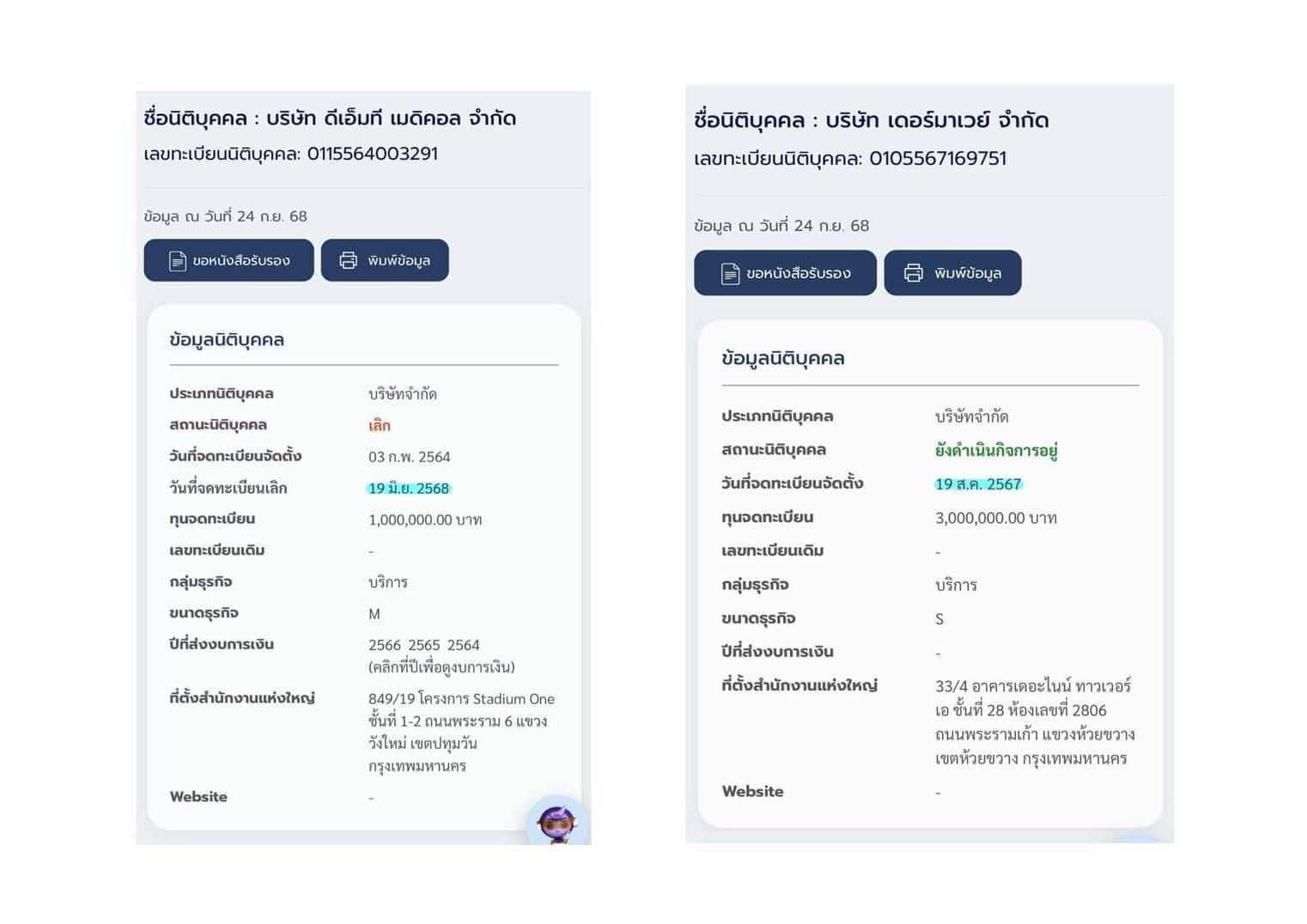 ส.ค. 2024 ปรากฏ ญาญ่าหมอต่อหมอกลางเปิดบริษัทใหม่ชื่อ Dermaway ซึ่งเป็นบริษัทที่ลูกค้าสาขาใหม่โอนเงินเข้า ซึ่งบริษัทนี้ไม่มีเมหุ้น (รูปในคอมเมนต์ที่ 5)