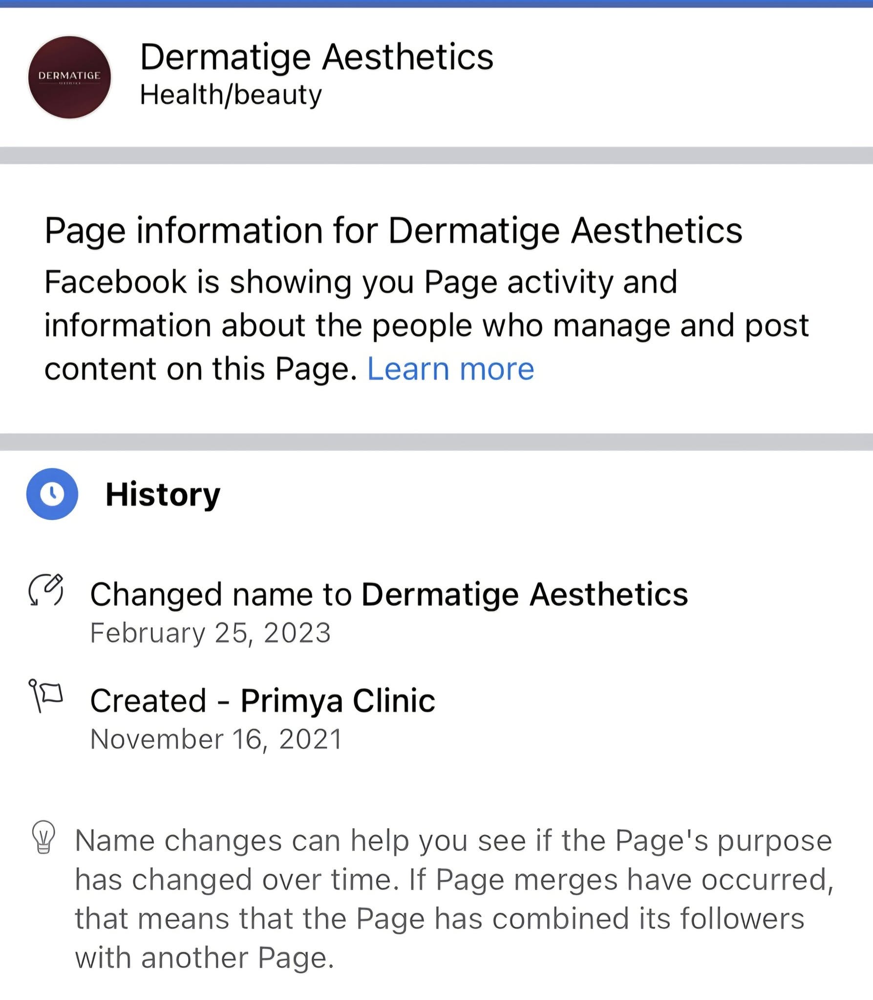 ก.พ. 2023 Facebook Primya Clinic เปลี่ยนชื่อเป็น Dermatige Clinic รวมถึงช่องทางโซเชียล และไลน์ลูกค้าทั้งหมดของ Primya Clinic (รูปในคอมเมนต์ที่ 1)