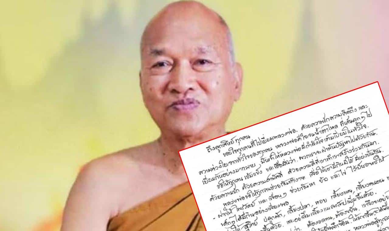 โดยในเนื้อหาจดหมายนั้นระบุว่า “ถึงลูกศิษย์ทุกคน