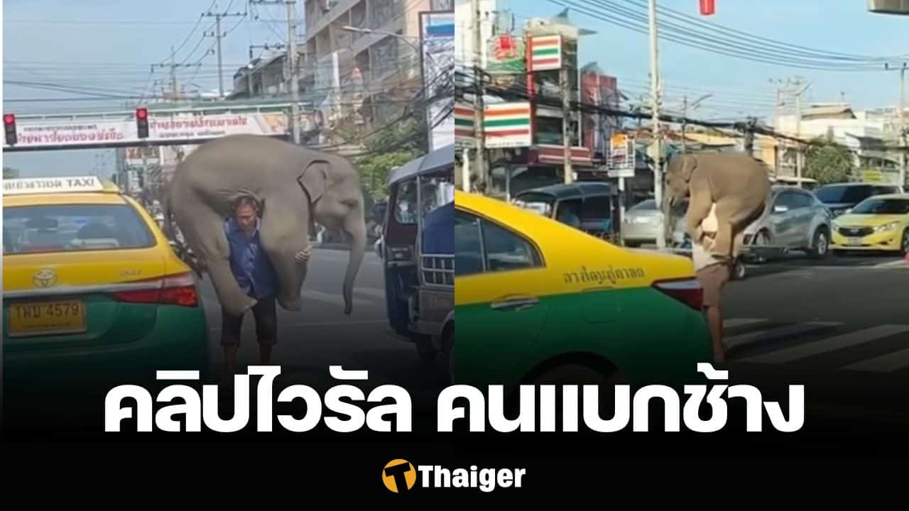 คลิปไวรัล คนไทยแบกช้าง กลางถนน เฉลยที่มาทำอึ้ง