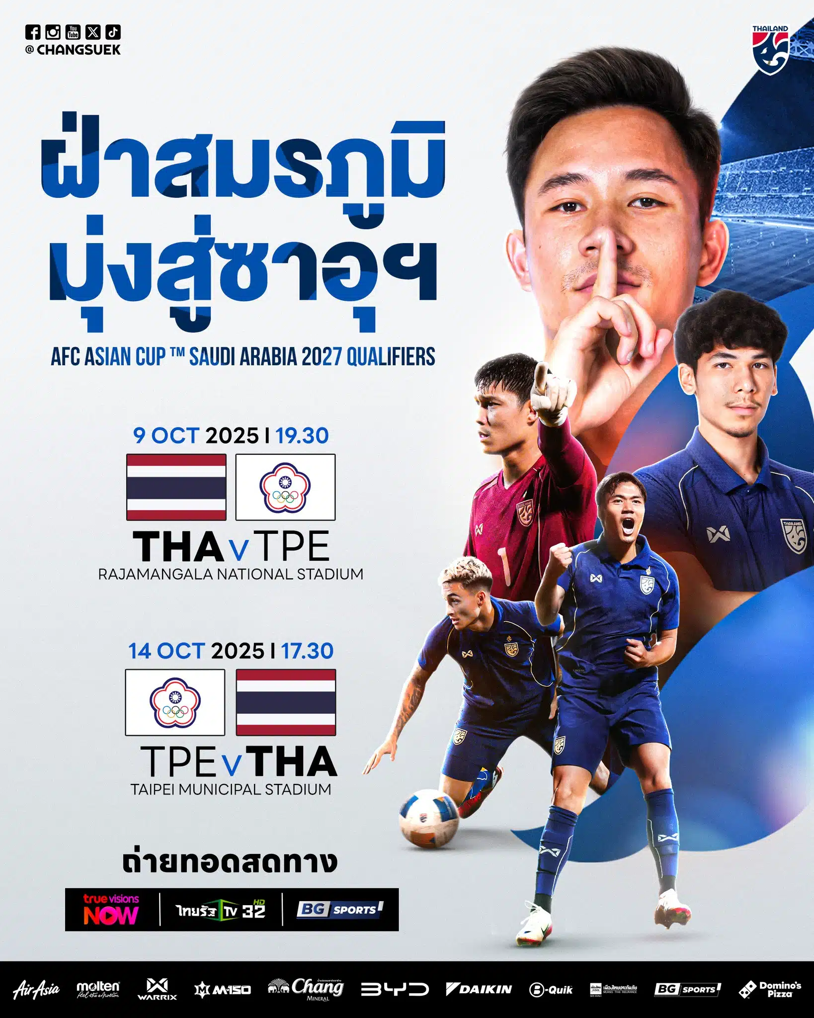 ในช่วงหัวค่ำวันพรุ่งนี้ (9 ตุลาคม) ฟุตบอลทีมชาติไทย ชุดใหญ่ ภายใต้การคุมทัพของ มาซาทาดะ อิชิอิ จะลงสนามพบกับ ทีมชาติไต้หวัน ในเกมเอเชียน คัพ 2025 รอบคัดเลือก นัดที่ 3