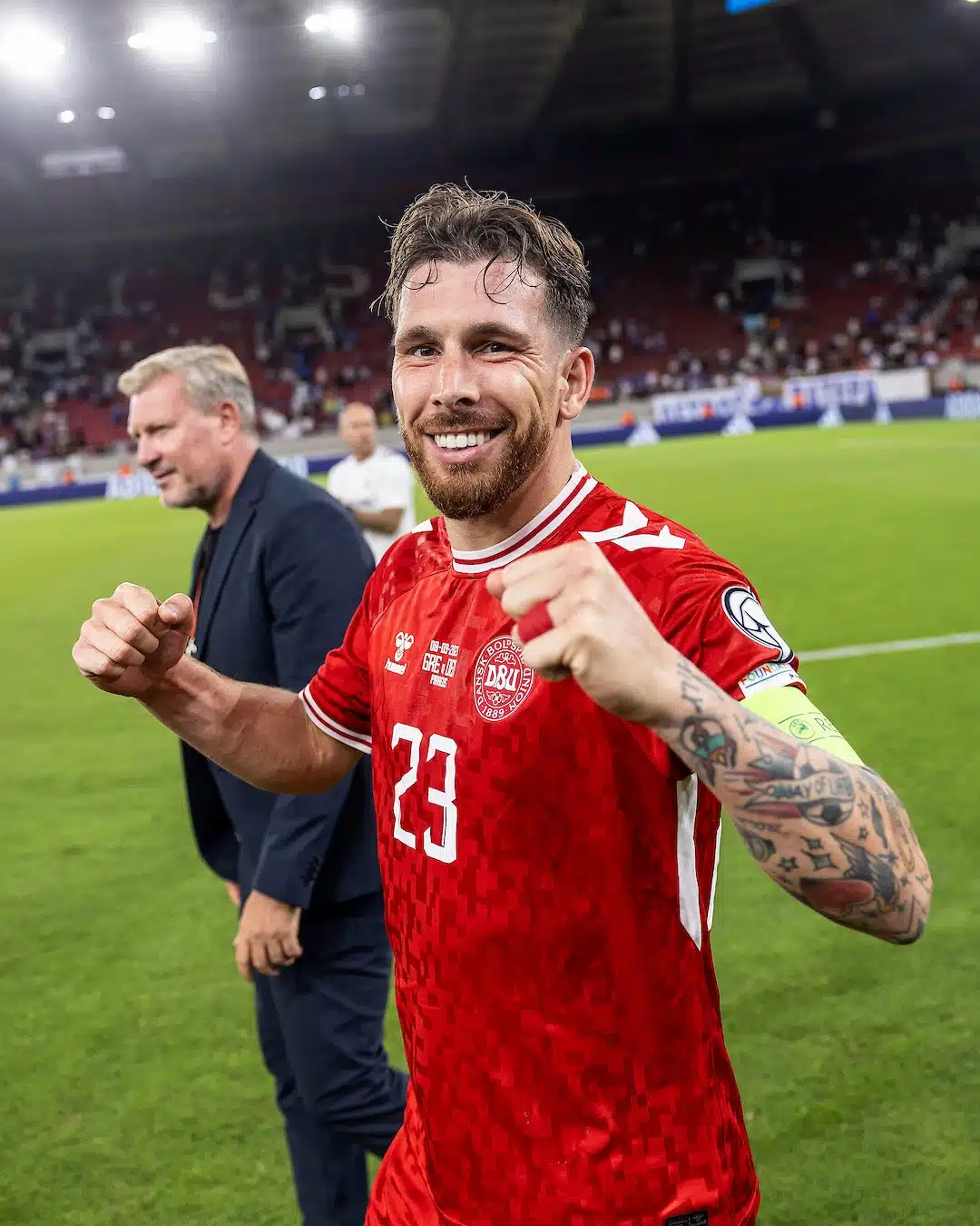เดนมาร์ก (4-3-3) : แคสเปอร์ ชไมเคิ่ล (GK) – แอนทอน กาอี, โยอาคิม แอนเดอร์เซ่น, อันเดรียส คริสเตนเซ่น, โยอาคิม เมห์เล่ – ปิแอร์ ฮอยเบียร์, มอร์เท่น ยุลมันด์, คริสเตียน อีริคเซ่น – กุสตาฟ อิซัคเซ่น, ราสมุส ฮอยลุนด์, มิคเกล ดาร์มสการ์ด