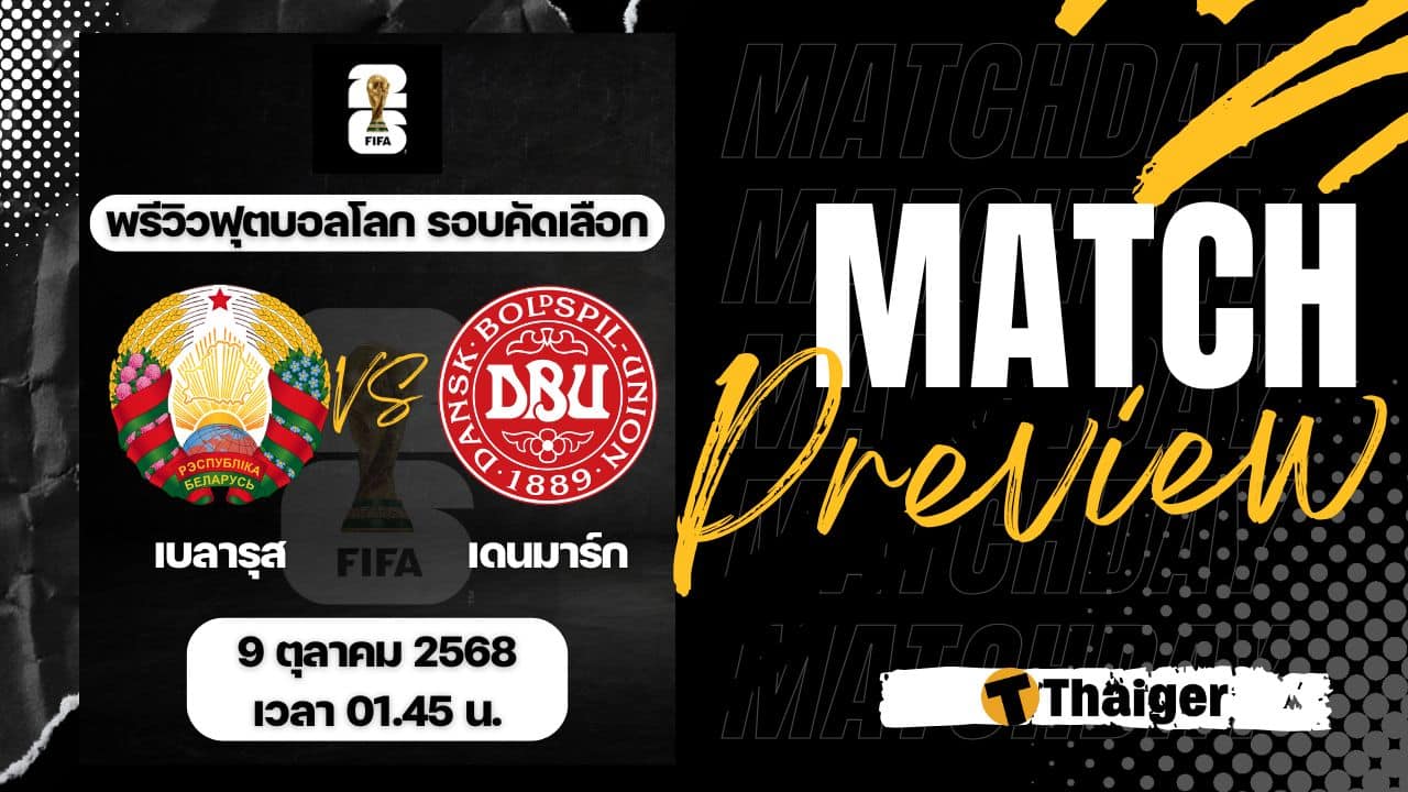 9 ตุลาคม 2568 เวลา 01.45 น. ถ่ายทอดสด ดูบอลสด ฟุตบอลโลก 2026 รอบคัดเลือก โซนยุโรป เบลารุส พบ เดนมาร์ก The Thaiger พาไปวิเคราะห์เกม พร้อมการทำนายผล และคาดการณ์ 11 ตัวจริงได้ที่นี่
