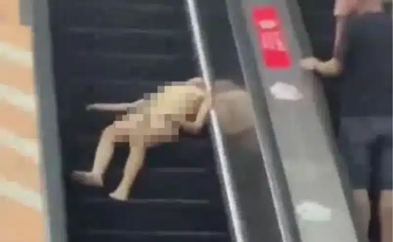 สาวจีนคลั่ง วิ่งแก้ผ้าบนบันไดเลื่อน กลางด่านมาเก๊า ชาวเน็ตคาด เสียพนันจนหมดตัว