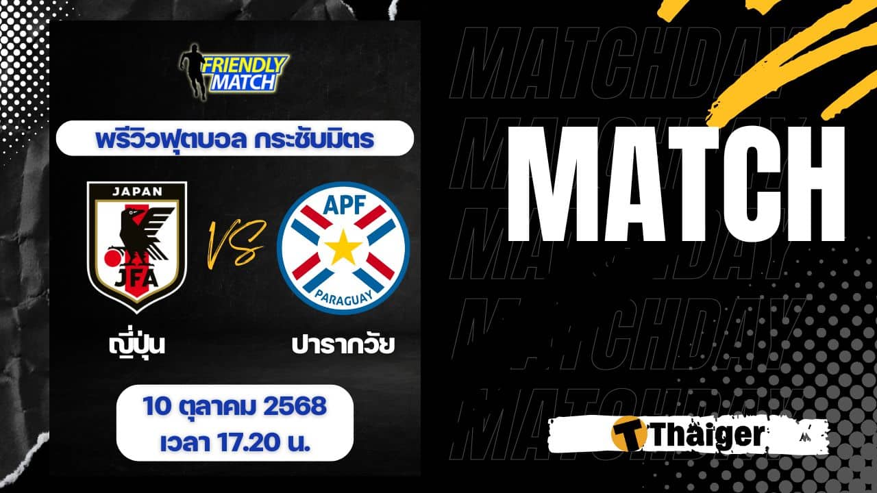 10 ตุลาคม 2568 เวลา 17.20 น. ถ่ายทอดสด ดูบอลสด ฟุตบอลกระชับมิตร คู่ระหว่าง ญี่ปุ่น พบ ปารากวัย The Thaiger พาไปวิเคราะห์เกม พร้อมการทำนายผล และคาดการณ์ 11 ตัวจริงได้ที่นี่