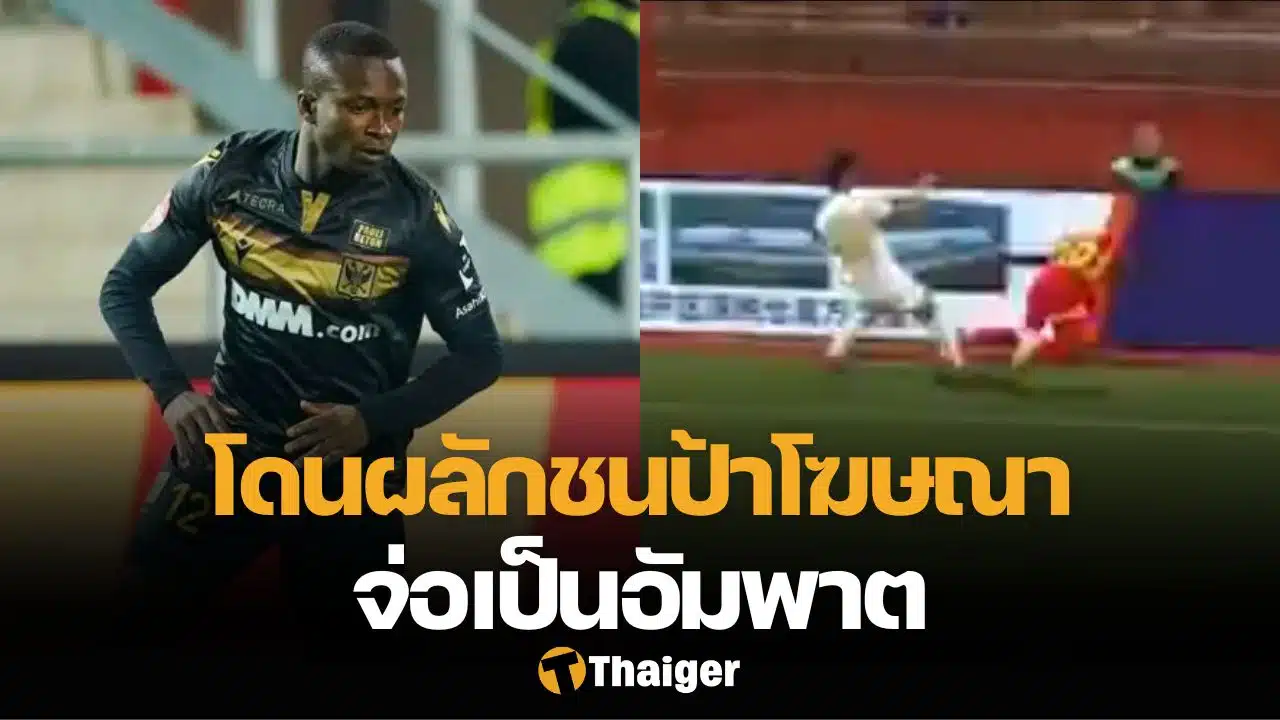 เกิดขึ้นอีกแล้ว เมื่อ ซามูเอล อาซาโมอาห์ นักฟุตบอลในลีกจีน ถูกคู่แข่งผลักจนศีรษะกระแทกกับป้ายโฆษณาข้างสนาม ส่อเป็นอัมพาต