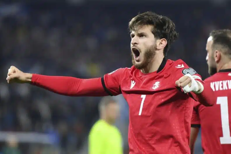 จอร์เจีย (4-3-3) : จอร์จี้ มามาร์ดาชวิลี่ (GK) – โอตาร์ คาคาบัดเซ่, กูราม คาเชีย, ซาบา โกกลิชิดเซ่, อิราคลี อาซาโรวี่ – นิก้า กักนิดเซ่, จอร์จี้ โคโชราชวิลี่, อันซอร์ เมคราบิชวิลี่ – ซูริโค ดาวิตัชวิลี่, จอร์เจส มิเคาตัดเซ่, บูดู ซิฟซิวัดเซ่