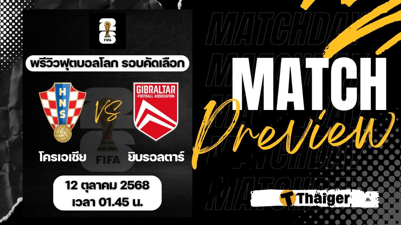 12 ตุลาคม 2568 เวลา 01.45 น. ถ่ายทอดสด ดูบอลสด ฟุตบอลโลก 2026 รอบคัดเลือก โซนยุโรป คู่ระหว่าง โครเอเชีย พบ ยิบรอลตาร์ The Thaiger พาไปวิเคราะห์เกม พร้อมการทำนายผล และคาดการณ์ 11 ตัวจริงได้ที่นี่