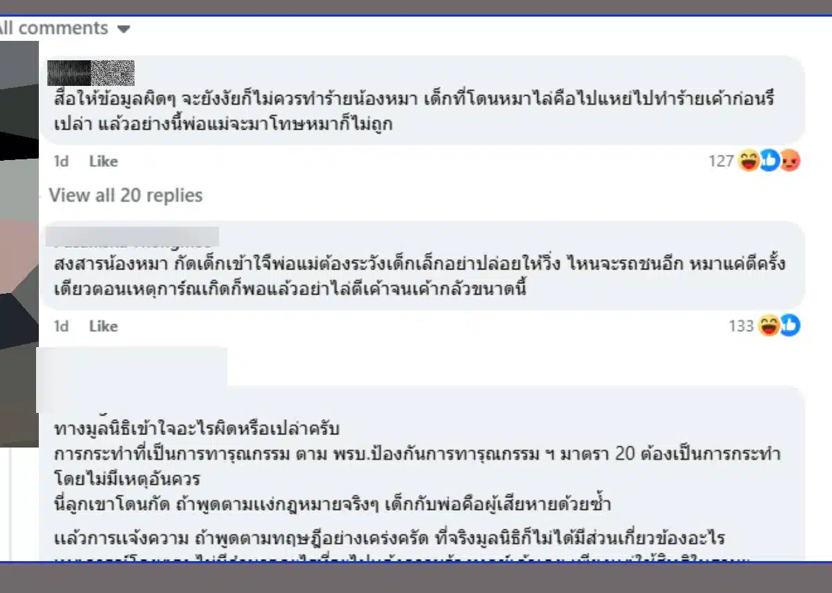 “กรณีสุนัขกัดเด็กกับ “กรณีมาไล่ตีหมาเพราะความโกรธแค้นและเจ็บใจ” เป็นคนละเรื่องคนละกรณีกันครับ ! กฎหมายไม่อนุญาตให้ใครทำร้ายทารุณกรรมสัตว์เพราะความโกรธแค้นหรือเจ็บใจครับ”.