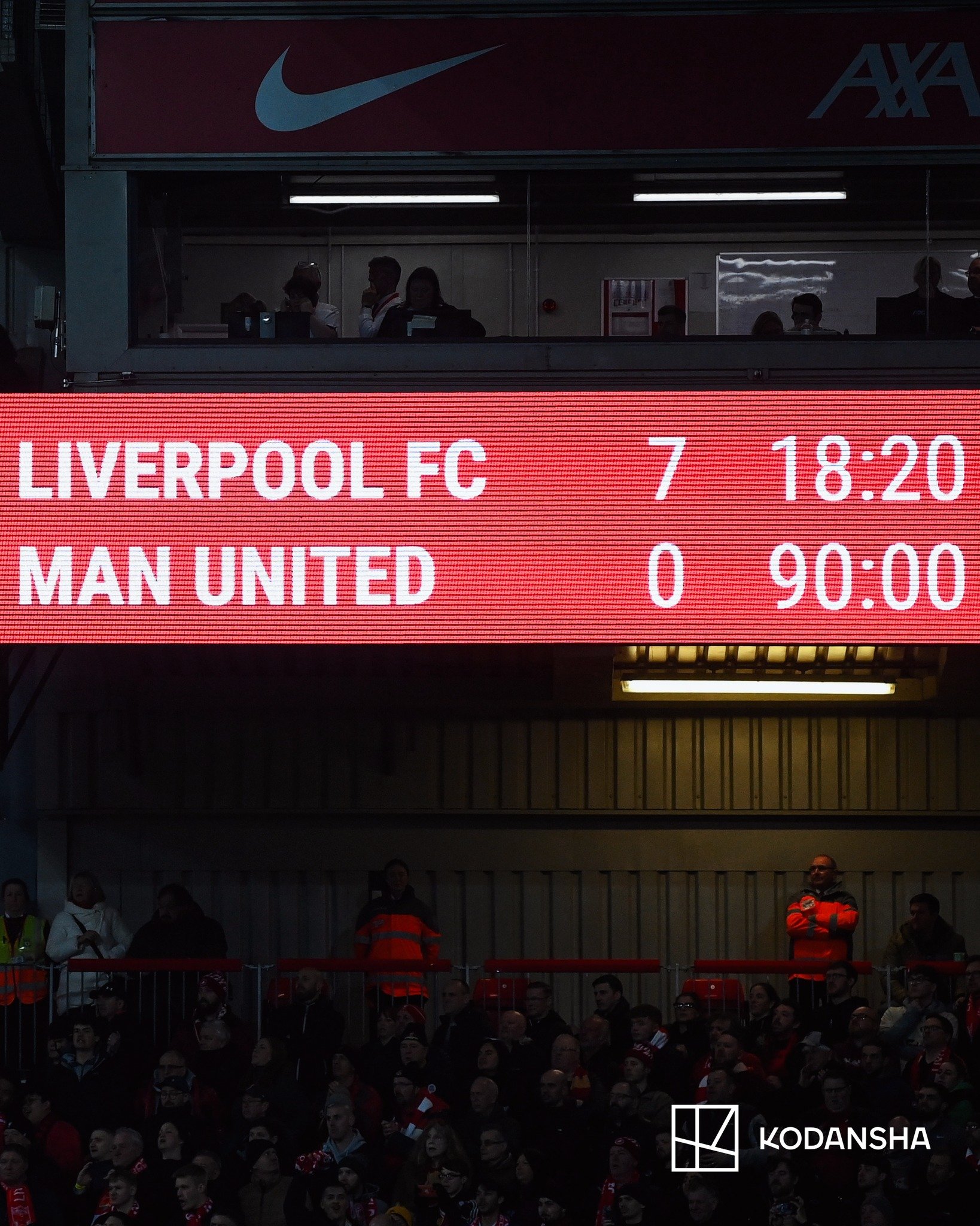 และหนึ่งภาพที่ได้รับความสนใจมากที่สุดนั่นก็คือ สกอร์บอร์ดที่สนามแอนฟิลด์ที่โชว์ผลการแข่งขันที่ ลิเวอร์พูล เอาชนะ แมนฯ ยูไนเต็ด 7-0 ซึ่งเกมดังกล่าวเกิดขึ้นเมื่อวันที่ 5 มีนาคม 2566 ในฤดุกาล 2022-2023 และยังเป็นชัยชนะที่สกอร์ขาดลอยมากที่สุดในประวัติศาสตร์การแข่งขันระหว่างทั้งสองทีม