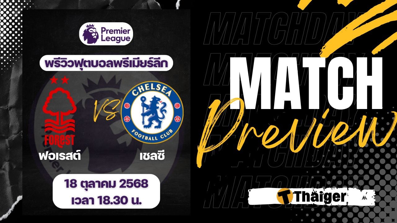 18 ตุลาคม 2568 เวลา 18.30 น. ถ่ายทอดสด ดูบอลสด ฟุตบอล พรีเมียร์ลีก ฤดูกาล 2025/26 ที่สนาม ซิตี้ กราวน์ น็อตติ้งแฮม ฟอเรสต์ พบ เชลซี The Thaiger พาไปวิเคราะห์เกม พร้อมการทำนายผล และคาดการณ์ 11 ตัวจริงได้ที่นี่
