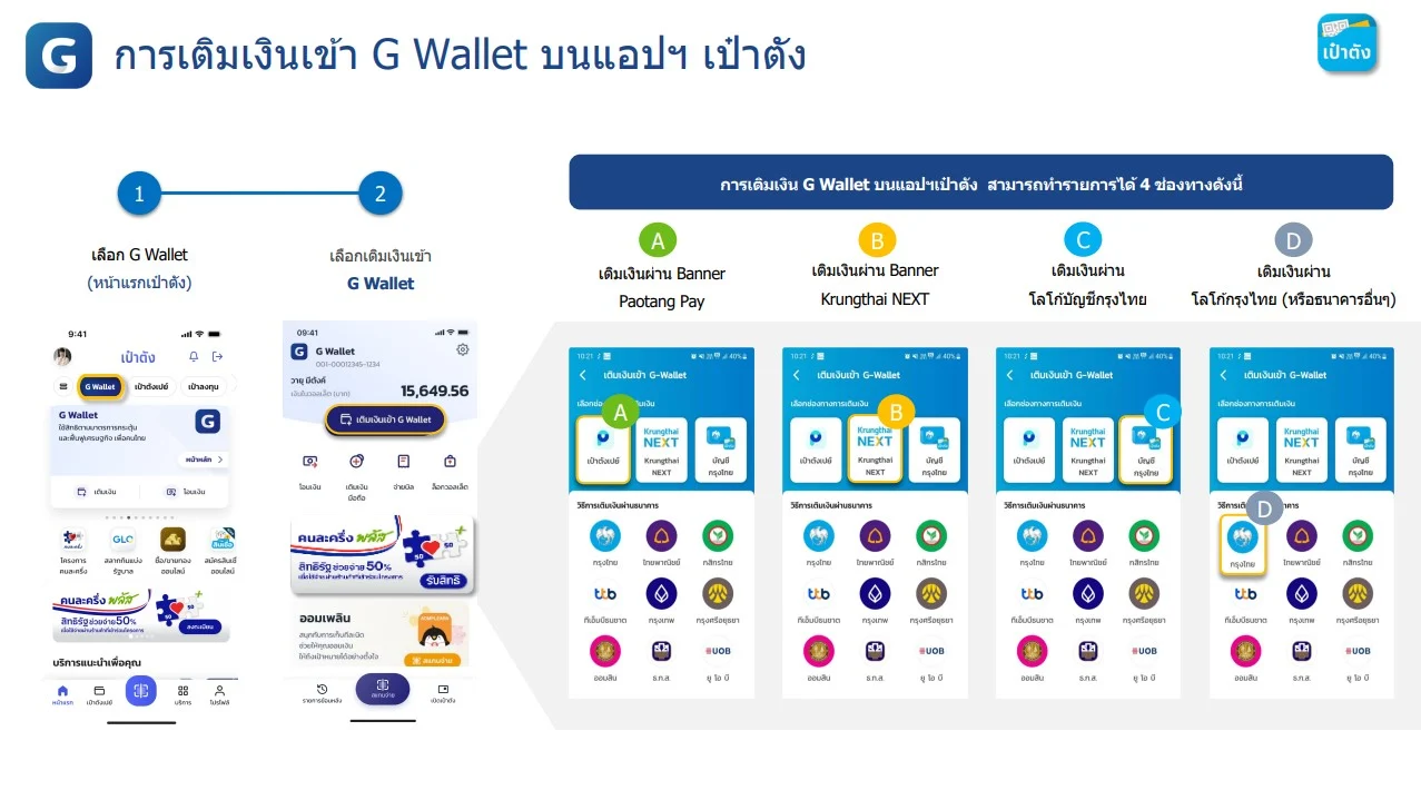 ทั้งนี้ ช่องทางการเติมเงินเข้า G Wallet สามารถทำได้ 3 ช่องทางด้วยกัน