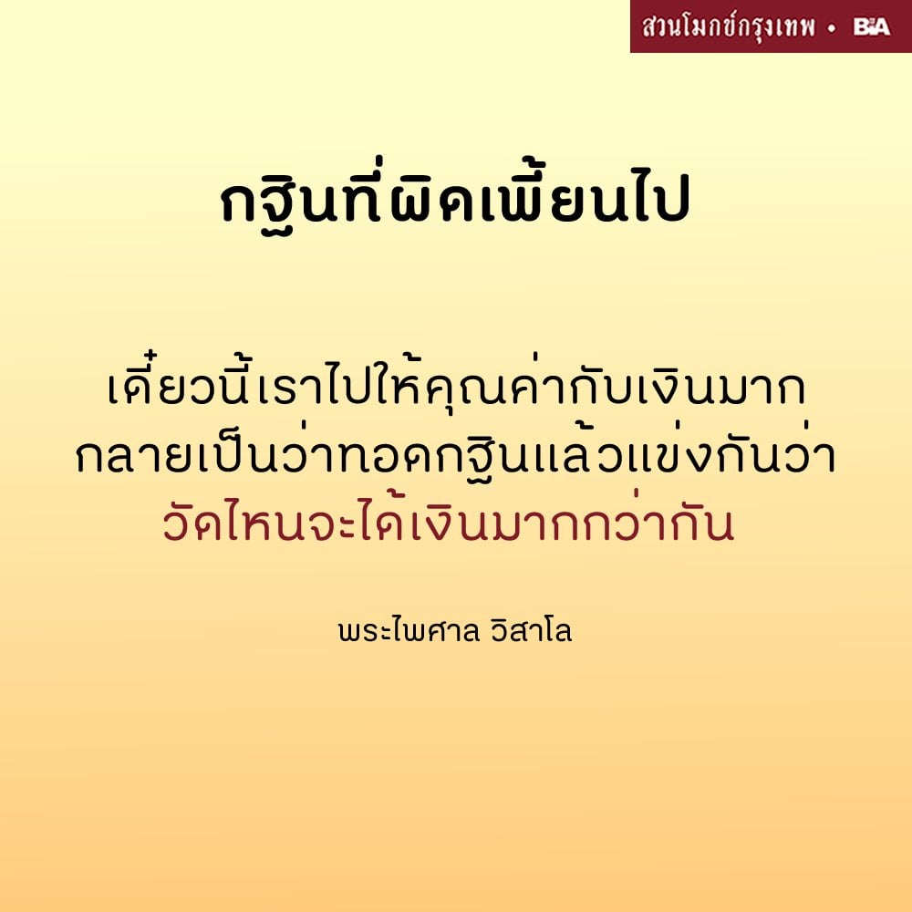 “เดี๋ยวนี้เราไปให้คุณค่ากับเงินมาก กลายเป็นว่าทอดกฐินแล้วแข่งกันว่าวัดไหนจะได้เงินมากกว่ากัน กลายเป็นว่าจำนวนเงินกลายเป็นตัววัดเรตติ้งของวัด หรือเจ้าอาวาส