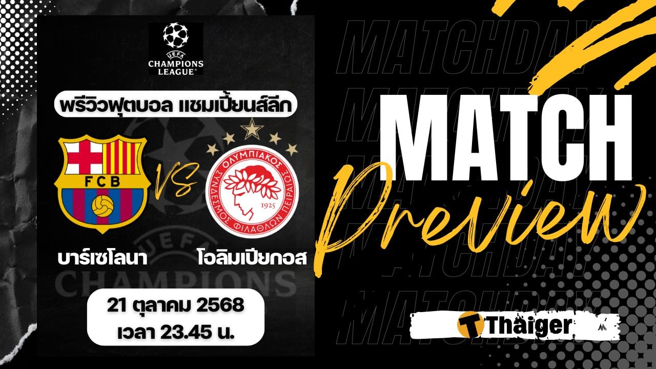21 ตุลาคม 68 ดูบอลสด ฟุตบอล ยูฟ่า แชมเปี้ยนส์ ลีก รอบลีกเฟส นัดที่ 3 ระหว่าง บาร์เซโลนา พบ โอลิมเปียกอส ที่สนาม เอสตาดิ โอลิมปิก หลุยส์ คอมปานีส์ เวลา 23:45 น. ตามเวลาประเทศไทย พร้อมถ่ายทอดสด