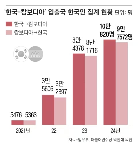 ตัวเลขดังกล่าวชี้ให้เห็นว่ามีชาวเกาหลีใต้หลายพันคนที่เดินทางไปกัมพูชาแล้วไม่กลับประเทศในแต่ละปี โดยเฉพาะอย่างยิ่งในปี 2024 มีชาวเกาหลีใต้เดินทางไปกัมพูชาถึง 100,820 คน แต่เดินทางกลับมาเพียง 97,572 คน ทำให้มีตัวเลขหายไปถึง 3,248 คน