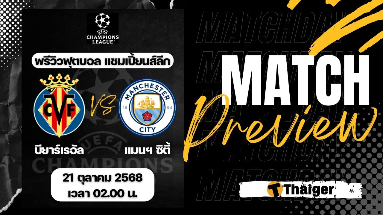 21 ตุลาคม 68 ดูบอลสด ฟุตบอล ยูฟ่า แชมเปี้ยนส์ ลีก รอบลีกเฟส นัดที่ 3 ระหว่าง บียาร์เรอัล พบ แมนซิตี้ ที่สนาม เด ลา เกรามิก้า เวลา 02:00 น. ตามเวลาประเทศไทย พร้อมถ่ายทอดสด