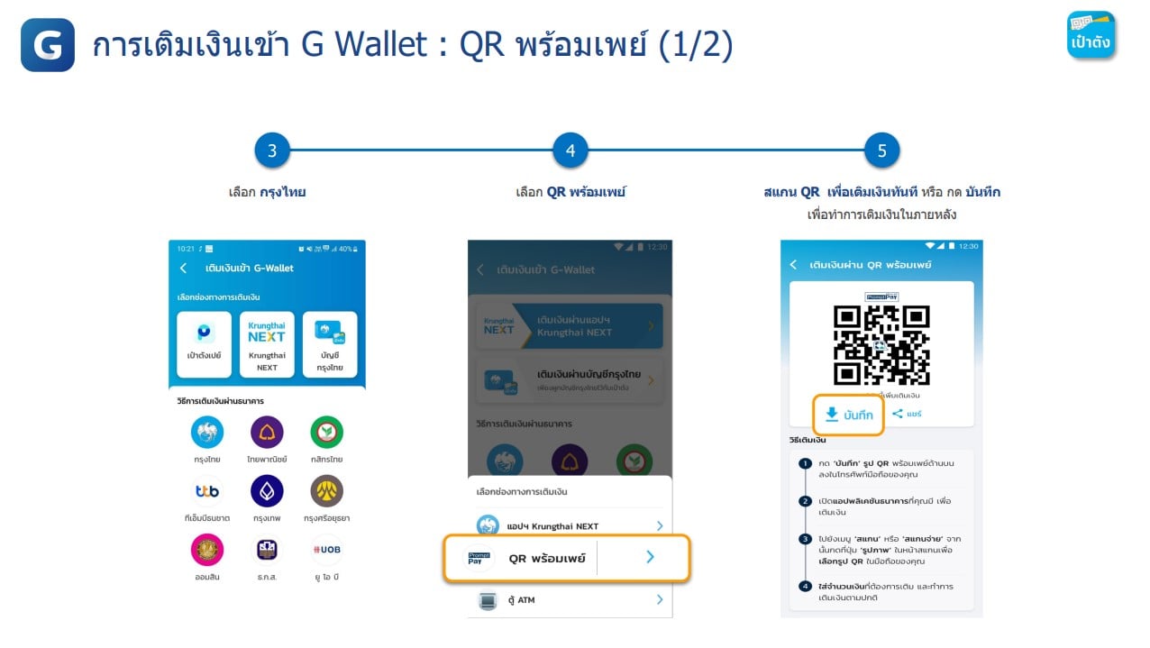 เปิดวิธีเติมเงินเข้า G-Wallet บนแอปฯ เป๋าตัง ฉบับจับมือทำ ทั้งผ่าน Mobile Banking, QR Code, และตู้ ATM เตรียมพร้อมก่อนใช้จ่าย 29 ต.ค. นี้
