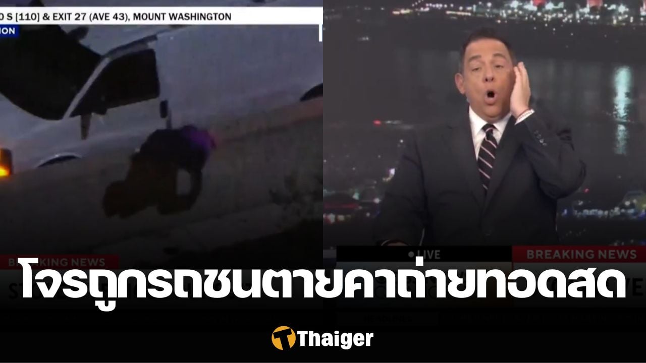 ภาพถ่ายทอดสดการไล่ล่ารถยนต์คนร้ายในลอสแอนเจลิสจบลงอย่างน่าสยดสยอง หลังผู้ต้องสงสัยปีนวิ่งข้ามทางด่วน ก่อนถูกรถยนต์ที่แล่นมาชนเสียชีวิตทันที