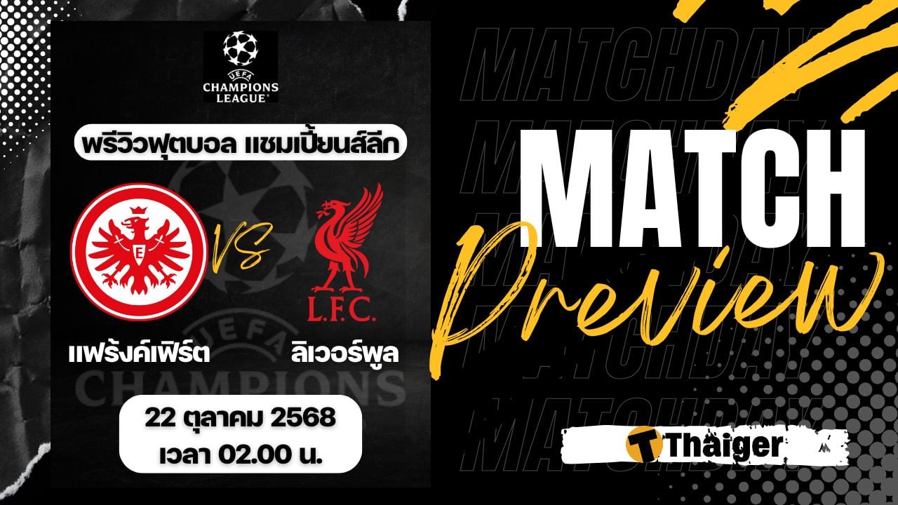 22 ตุลาคม 68 ดูบอลสด ฟุตบอล ยูฟ่า แชมเปี้ยนส์ ลีก รอบลีกเฟส นัดที่ 3 ระหว่าง แฟร้งเฟิร์ต พบ ลิเวอร์พูล ที่สนาม ดอยช์ แบงก์ พาร์ค เวลา 02:00 น. ตามเวลาประเทศไทย พร้อมถ่ายทอดสด