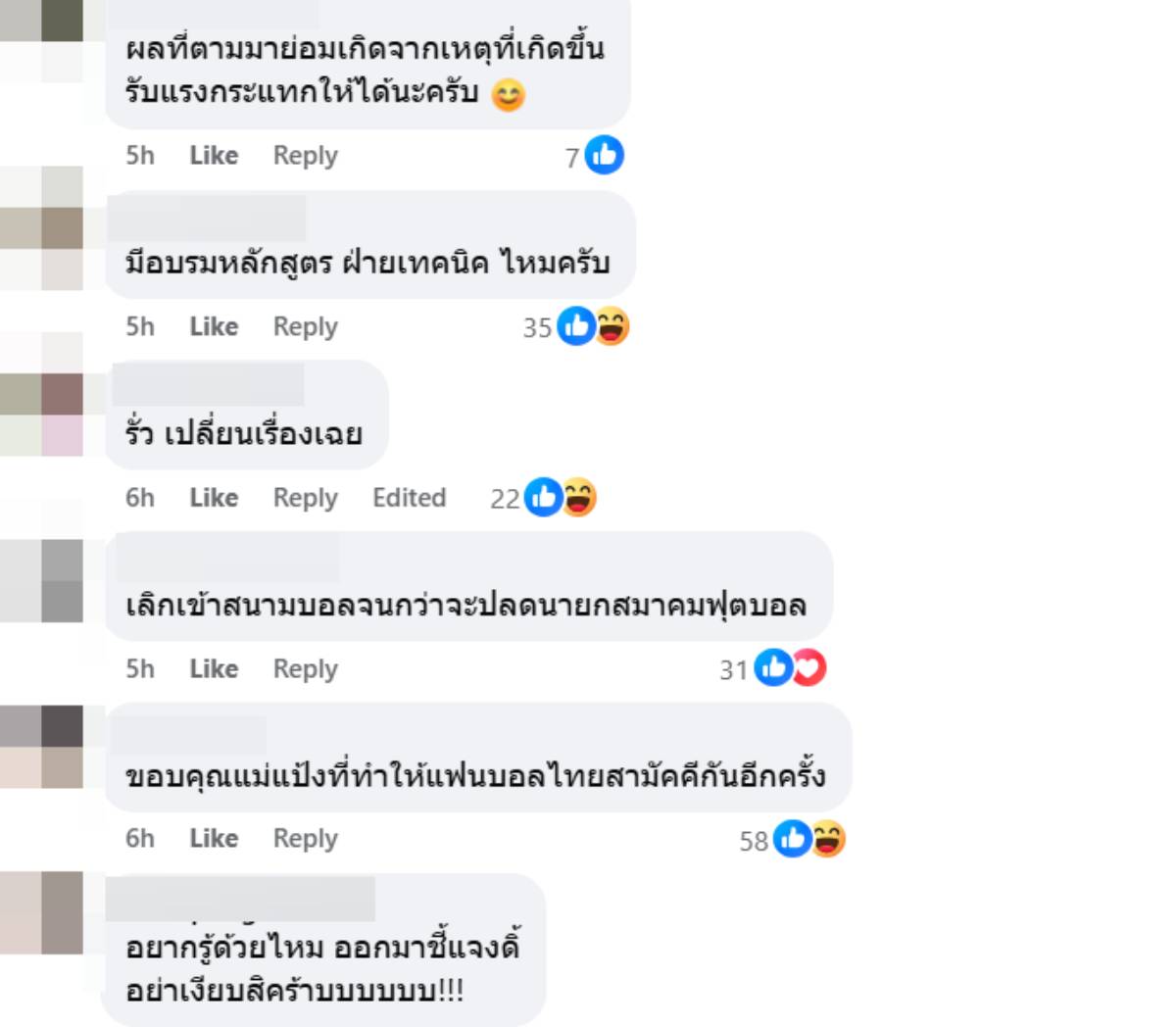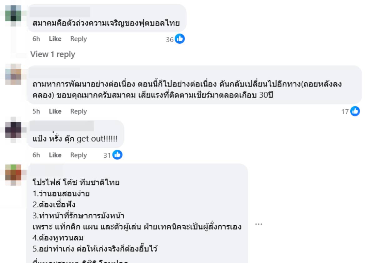 ถึงตรงนี้ เมื่อลองตรวจสอบความเคลื่อนไหวบนหน้าเฟซบุ๊กของสมาคมฟุตบอล “FA Thailand” ปรากฏยังคงมีแฟนบอลและคนจำนวนมากเข้ามาพิมพ์ใส่ข้อความหนักมือ-รุมวิจารณ์การปลดโค้ชหนนี้ชนิดไม่ยอมเลิกราเอาง่ายๆ เลยทีเดียวด้วย