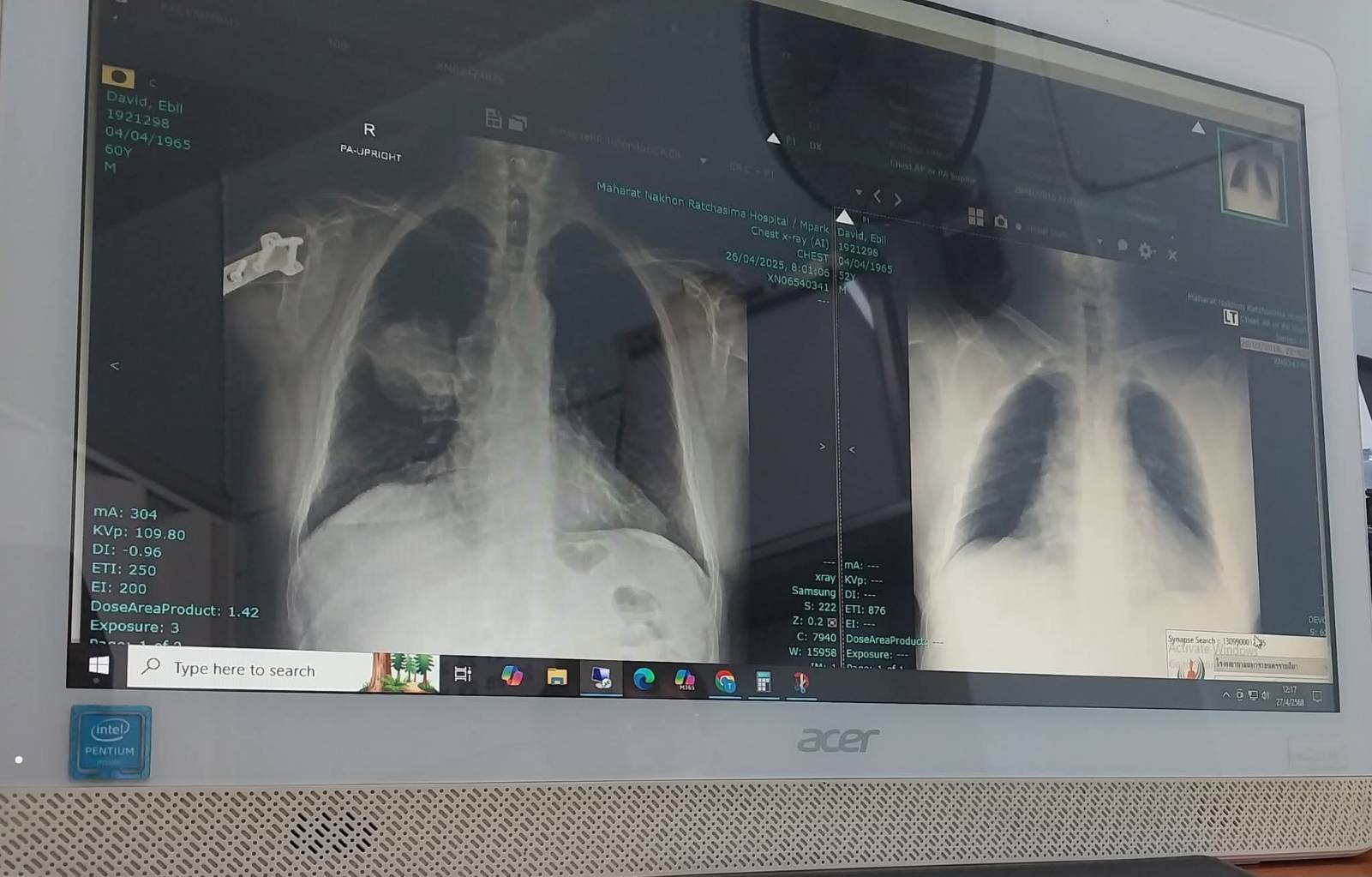 “สามีเป็นมะเร็งปอดระยะ 4 ปฏิเสธการรักษาเป็นผลมาจากการสูบบุหรี่ไฟฟ้าคาดว่าป่วยมาตั้งแต่ ม.ค. แต่ตรวจเอ็กซเรย์ (X-Ray) และซีที-สแกน (CT-Scan) จริงจังตอนเดือน พ.ค.เพราะไอเป็นเลือด ตอนนั้นพบก้อนขนาด 7 เซนติเมตร เจ้าตัวเลยอยากทำ การเอกซเรย์ปอด (Chest X-ray) คือ การตรวจเช็คอวัยวะภายในของบริเวณส่วนทรวงอกที่ประกอบไปด้วยโครงกระดูก ปอด และหัวใจเป็นหลัก”