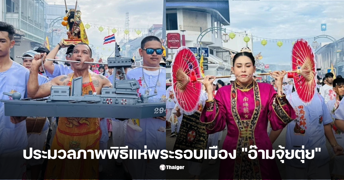 วันที่ 27 ตุลาคม 2568 บรรยากาศการประกอบพิธีแห่พระรอบเมือง ในงานประเพณีถือศีลกินผักจังหวัดภูเก็ต ประจำปี 2568 ซึ่งเป็นวันที่ 8 ของการจัดงานประเพณีที่สืบทอดกันมาอย่างยาวนาน โดยวันนี้เป็นพิธีแห่พระรอบเมืองของศาลเจ้าจุ้ยตุ่ย เต้าโบ้เก้ง ซึ่งเป็นศาลเจ้าเก่าแก่ในภูเก็ต โดยขบวนได้ออกจากศาลเจ้า (อ๊าม) ตั้งแต่เช้า ไปตามถนนเส้นต่าง ๆ เพื่อมุ่งหน้าไปสะพานหิน เป็นขบวนแห่พระที่ยาวที่สุด และมีม้าทรงเข้าร่วมกว่า 2,500 คน ได้ใช้เหล็กแหลม ดาบ เรือสำเภา ร่ม หัวมณฑลในตำนานทิ่มแทงตามร่างกาย โดยเฉพาะบริเวณกระพุ้งแก้มและลิ้น และยังมีการอาบน้ำมัน ซึ่งเชื่อกันว่าเป็นการรับเคราะห์แทนผู้ถือศีลกินผัก ซึ่งตลอดเส้นทางที่ขบวนพระผ่าน มีประชาชนและนักท่องเที่ยวทั้งชาวไทยและต่างชาติร่วมชมขบวนพระ ตั้งโต๊ะรับพระ และจุดประทัด เนืองแน่นในถนนทุกสายที่องค์พระผ่าน