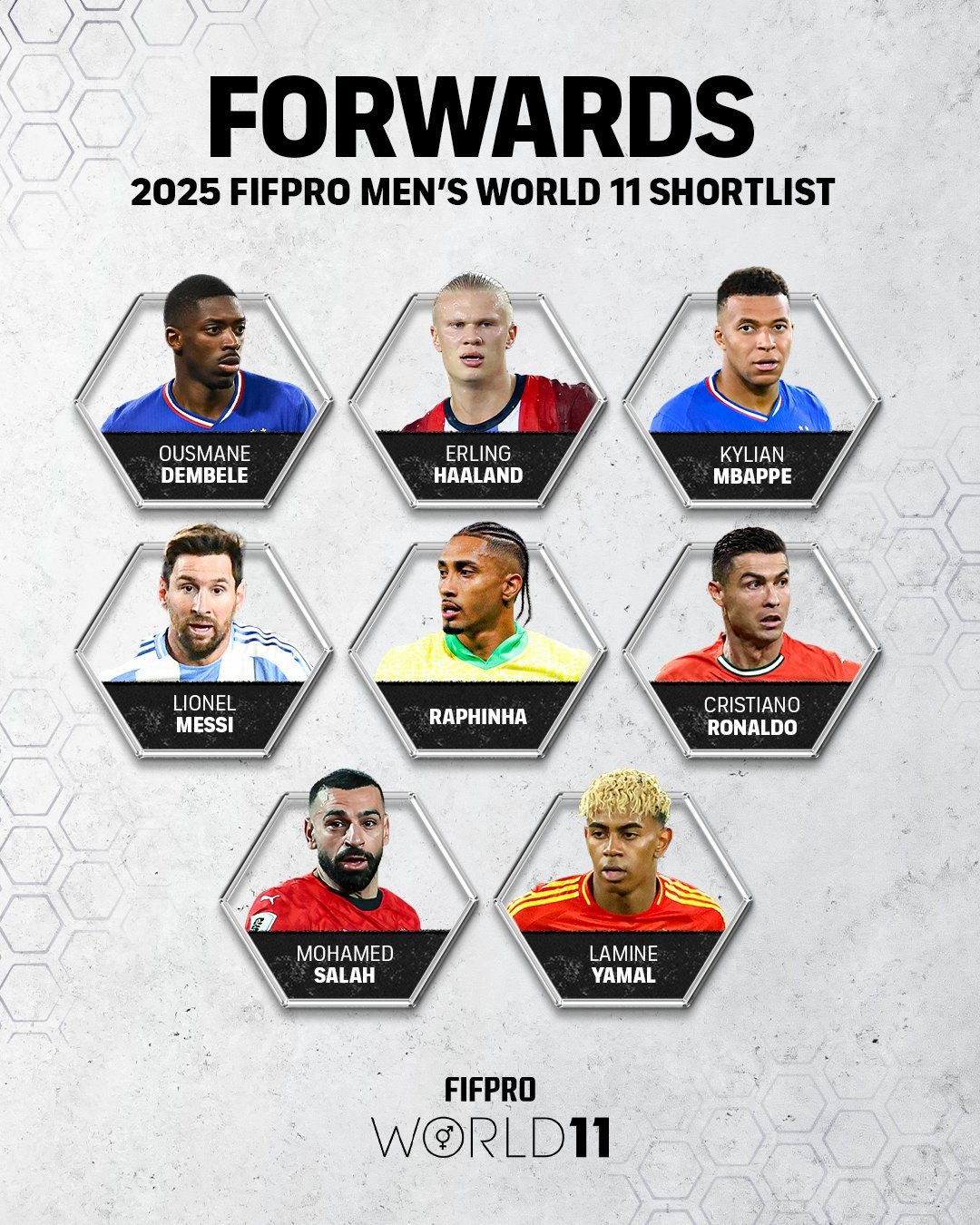 ฟิฟโปร (FIFPRO) เผยรายชื่อนักเตะที่มีลุ้นติดทีมยอดเยี่ยมประจำปี 2025 โดยปีนี้มีเซอร์ไพรส์เพราะทั้ง คริสเตียโน่ โรนัลโด้ และ ลิโอเนล เมสซี่ กลับมามีติดโผนี้อีกครั้ง