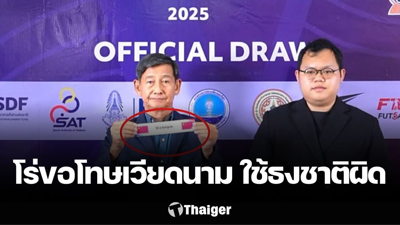 สมาคมฟุตบอลไทย ส่งหนังสือขอโทษทีมชาติเวียดนาม หลังใช้ธงชาติผิดเป็น ทีมชาติจีน ในการจับสลากแบ่งกลุ่ม ฟุตซอล U19 ชิงแชมป์อาเซียน