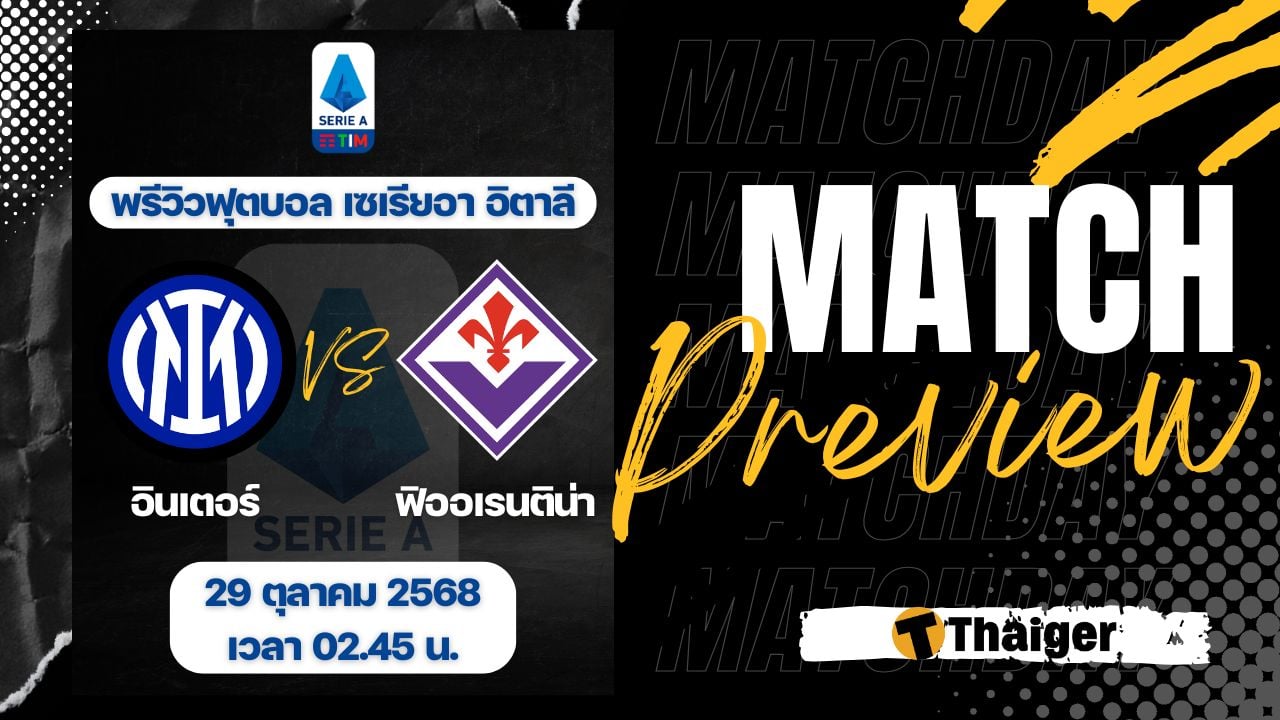 29 ตุลาคม 2568 เวลา 02.45 น. ถ่ายทอดสด ดูบอลสด ฟุตบอล กัลโช่ เซเรียอา อิตาลี ฤดูกาล 2025/26 ที่สนาม จูเซ็ปเป้ เมอัซซ่า อินเตอร์ มิลาน พบ ฟิออเรนติน่า The Thaiger พาไปวิเคราะห์เกม พร้อมการทำนายผล และคาดการณ์ 11 ตัวจริงได้ที่นี่