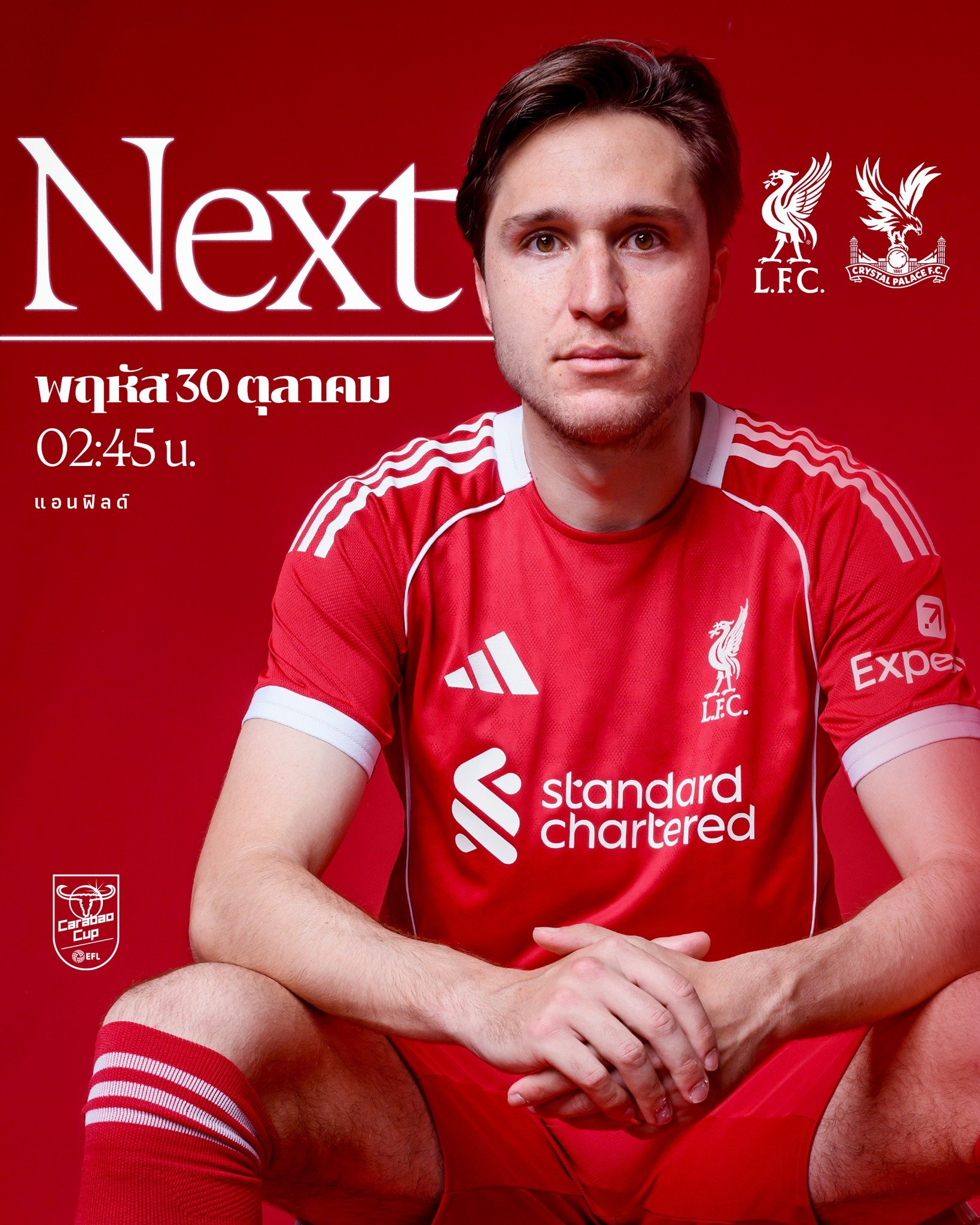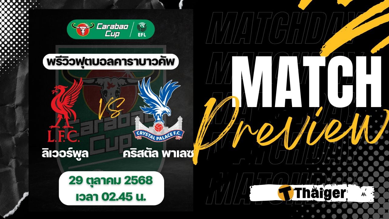 29 ตุลาคม 2568 เวลา 02.45 น. ถ่ายทอดสด ดูบอลสด ฟุตบอล คาราบาว คัพ ฤดูกาล 2025/26 รอบ 4 ที่สนาม แอนฟิลด์ ลิเวอร์พูล พบ คริสตัล พาเลซ The Thaiger พาไปวิเคราะห์เกม พร้อมการทำนายผล และคาดการณ์ 11 ตัวจริงได้ที่นี่