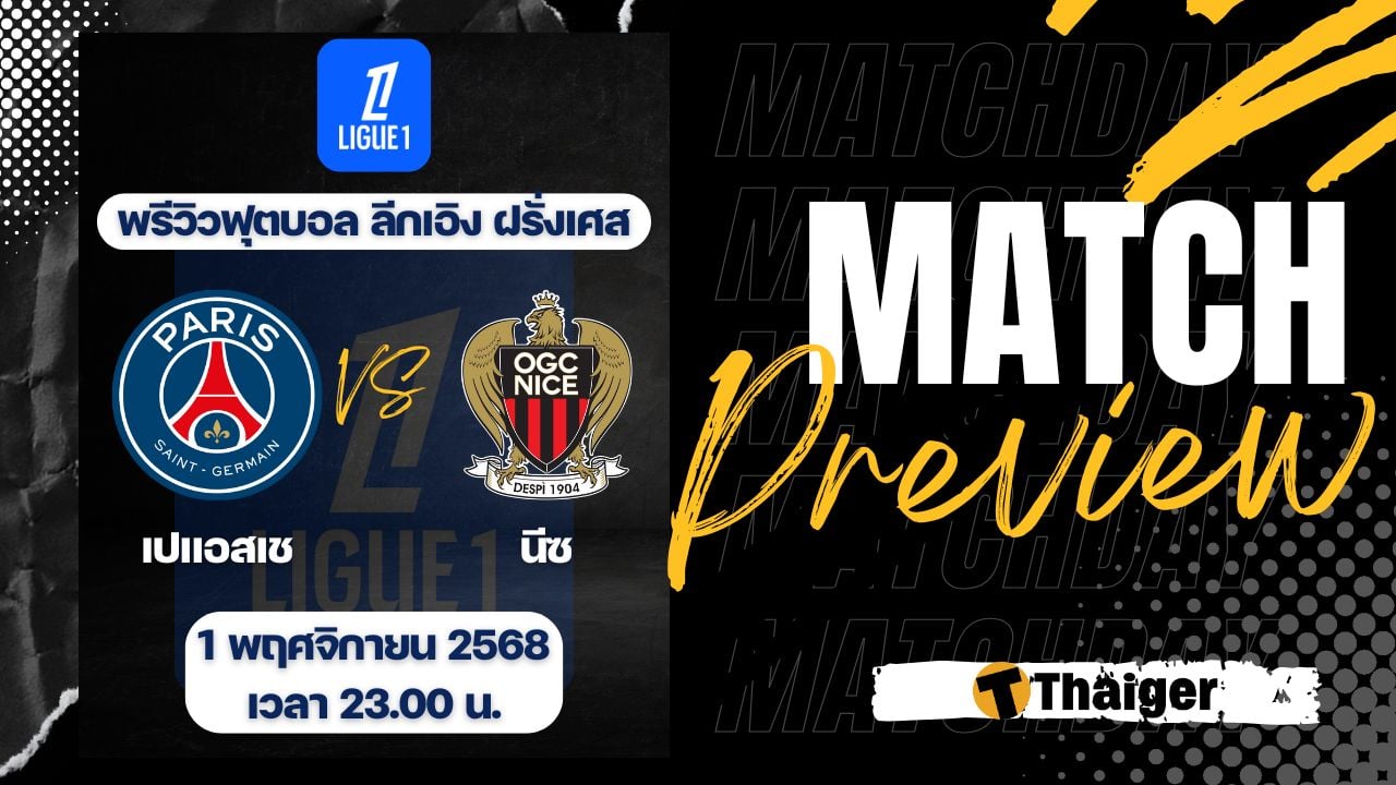 1 พฤศจิกายน 2568 เวลา 23.00 น. ถ่ายทอดสด ดูบอลสด ฟุตบอล ลีกเอิง ฝรั่งเศส ฤดูกาล 2025/26 ที่สนาม พาร์ค เดส์ แพร็งซ์ เปแอสเช พบ นีซ The Thaiger พาไปวิเคราะห์เกม พร้อมการทำนายผล และคาดการณ์ 11 ตัวจริงได้ที่นี่