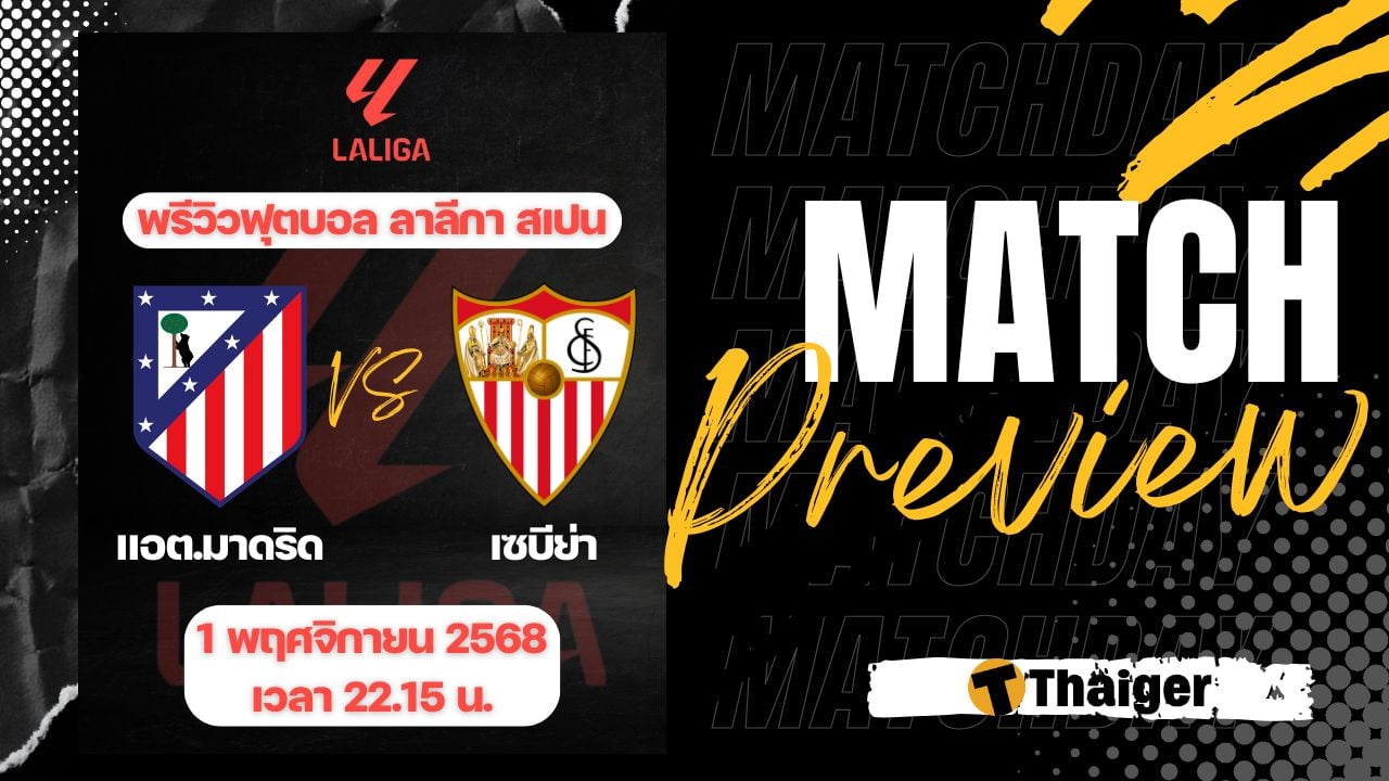 1 พฤศจิกายน 2568 เวลา 22.15 น. ถ่ายทอดสด ดูบอลสด ฟุตบอล ลาลีกา สเปน ฤดูกาล 2025/26 ที่สนาม ริยาห์ด แอร์ เมโทรโปลิตาโน่ แอต.มาดริด พบ เซบีย่า The Thaiger พาไปวิเคราะห์เกม พร้อมการทำนายผล และคาดการณ์ 11 ตัวจริงได้ที่นี่