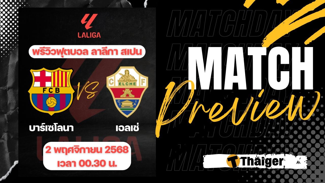 2 พฤศจิกายน 2568 เวลา 00.30 น. ถ่ายทอดสด ดูบอลสด ฟุตบอล ลาลีกา สเปน ฤดูกาล 2025/26 ที่สนาม เอสตาดิ โอลิมปิก หลุยส์ คอมปานีส์ บาร์เซโลนา พบ เอลเช่ The Thaiger พาไปวิเคราะห์เกม พร้อมการทำนายผล และคาดการณ์ 11 ตัวจริงได้ที่นี่
