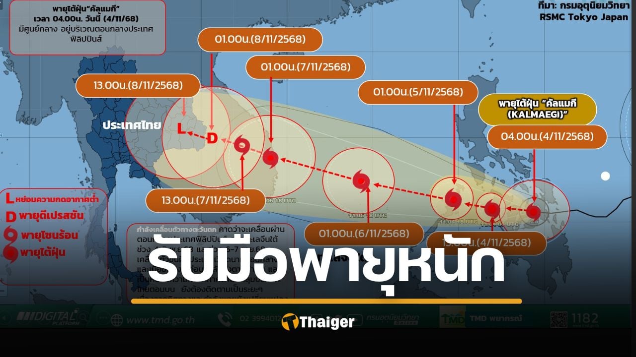 - กรมอุตุฯ เตือน พายุ “คัลแมกี” จ่อข้ามฟิลิปปินส์ กทม. ฝนชุก 3-4 พ.ย. นี้