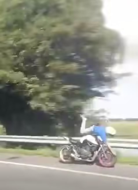 เตือนภัยคนใช้รถใช้ถนน เพจดังแชร์คลิป พบคนขับมอเตอร์ไซค์ท่าพิสดาร ยืนตัวตรง ก่อนเสียการทรงตัว สุดท้ายรถสะดับกระแทกแบริเออร์ ทำคนขับกระเด็นลงข้างทาง