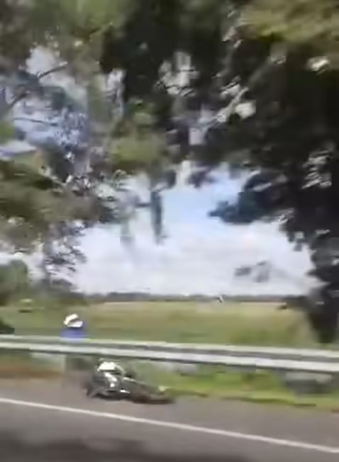 แต่หลังจากนั้นไม่นาน จะเห็นว่ามีมอเตอร์ไซค์คันหนึ่งในขบวนดังกล่าวเกิดเสียหลัก ก่อนที่เมอร์ไซค์จะกระแทกับแบริเออร์แบบจังๆ ส่งผลให้คนขับกระเด็นลงข้างทาง