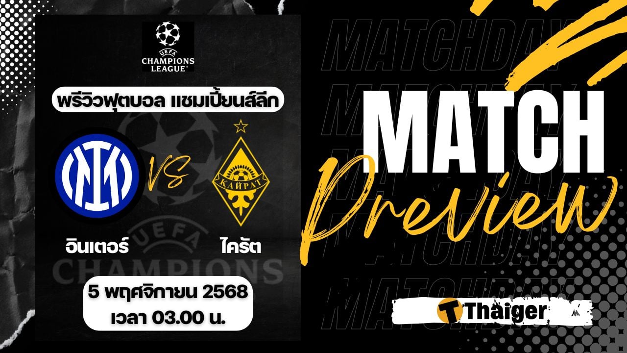 5 พฤศจิกายน 68 ดูบอลสด ฟุตบอล ยูฟ่า แชมเปี้ยนส์ ลีก รอบลีกเฟส นัดที่ 4 ระหว่าง อินเตอร์ มิลาน พบ ไครัต ที่สนาม จูเซ็ปเป้ เมอัซซ่า เวลา 03:00 น. ตามเวลาประเทศไทย พร้อมถ่ายทอดสด