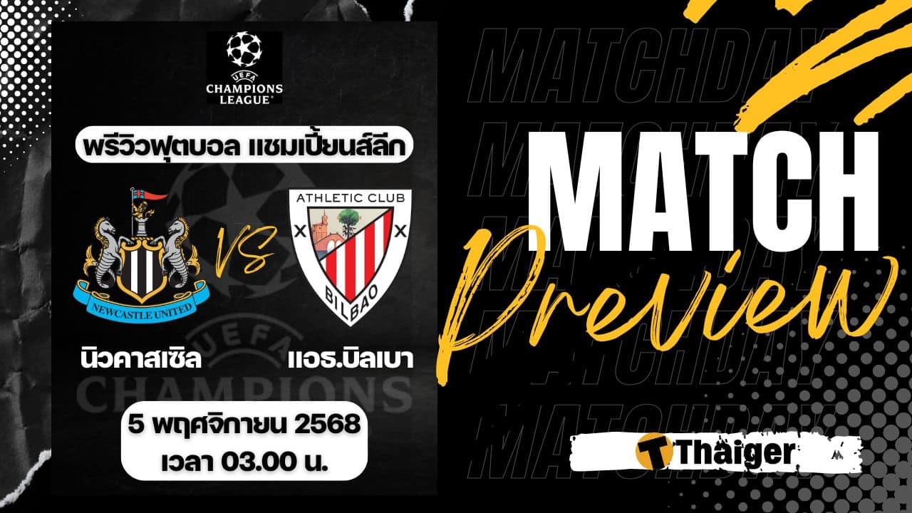 5 พฤศจิกายน 68 ดูบอลสด ฟุตบอล ยูฟ่า แชมเปี้ยนส์ ลีก รอบลีกเฟส นัดที่ 4 ระหว่าง นิวคาสเซิล พบ แอธ.บิลเบา ที่สนาม เซนต์ เจมส์ พาร์ค เวลา 03:00 น. ตามเวลาประเทศไทย พร้อมถ่ายทอดสด