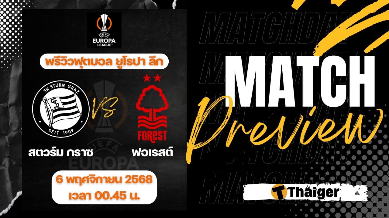 6 พฤศจิกายน 68 ดูบอลสด ฟุตบอล ยูโรป้า ลีก 2025/26 รอบลีกเฟส นัดที่ 4 ระหว่าง สตวร์ม กราซ พบ น็อตติ้งแฮม ฟอเรสต์ ที่สนาม เมอร์คูร์ อารีน่า เวลา 00:45 น. ตามเวลาประเทศไทย พร้อมถ่ายทอดสด