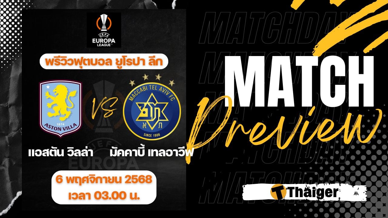 6 พฤศจิกายน 68 ดูบอลสด ฟุตบอล ยูโรป้า ลีก 2025/26 รอบลีกเฟส นัดที่ 4 ระหว่าง แอสตัน วิลล่า พบ มัคคาบี้ เทลอาวีฟ ที่สนาม วิลล่า พาร์ค เวลา 03:00 น. ตามเวลาประเทศไทย พร้อมถ่ายทอดสด