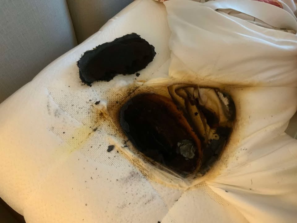 “ฝากเตือนด้วยนะ มันน่าอันตรายจริง ใช้มาเดือนนึงแล้วล่ะ แต่ไม่เคยเผลอหลับ ครั้งนี้เราพลาดเอง แต่มันก็น่ากลัวอยู่ เพิ่งเปิดดู ไหม้ลงลึกมากเลย”