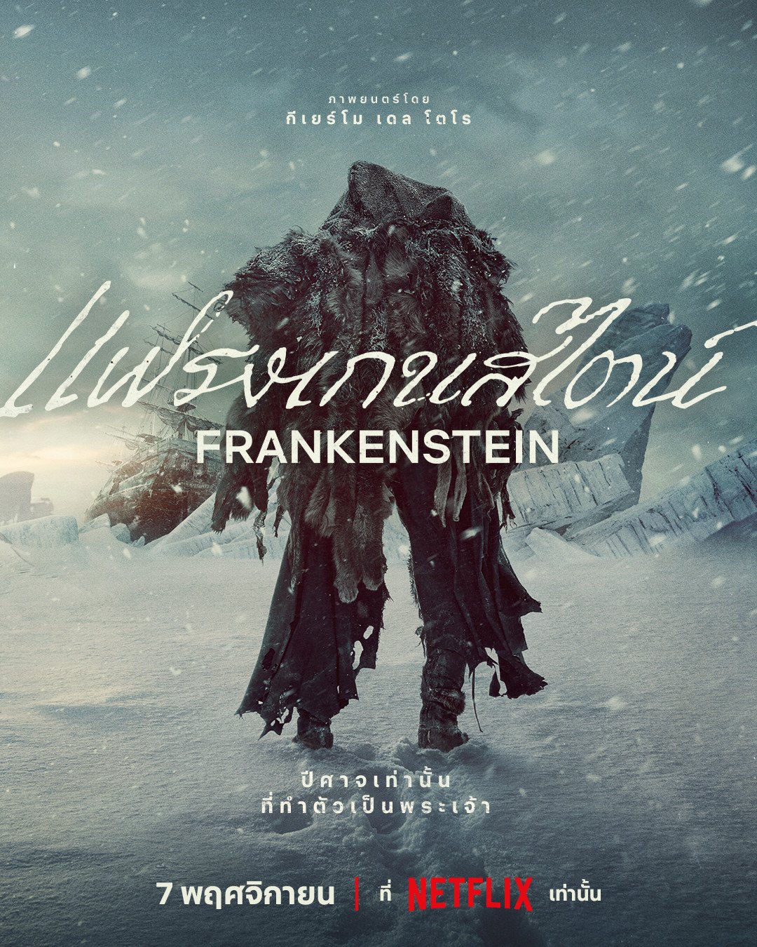ภาพยนตร์ Frankenstein (2025) ผลงานล่าสุดจากเจ้าพ่ออสุรกาย กีเยร์โม เดล โตโร กำลังทะยานยอดคนดูใน Netflix เวลานี้นำแสดงโดยทัพดาราดัง Oscar Isaac (วิคเตอร์ แฟรงเกนสไตน์), Jacob Elordi (อสุรกาย) และ Mia Goth (อลิซาเบธ)